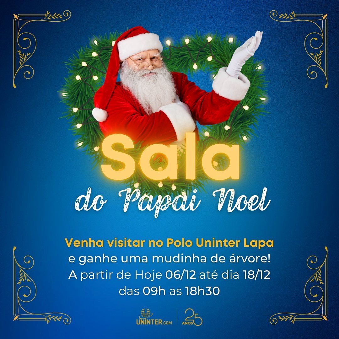 Já na Lapa (PR), o polo local da Uninter abriu a sala do Papai Noel para visitação pública. Ali, a criançada poderá respirar a magia do Natal, tirar fotos e ainda ganhar uma muda de árvore. As portas do polo estão abertas para visitas até o próximo dia 18, das 9h às 18h30.
