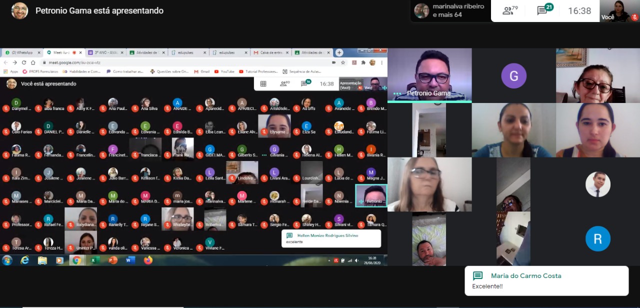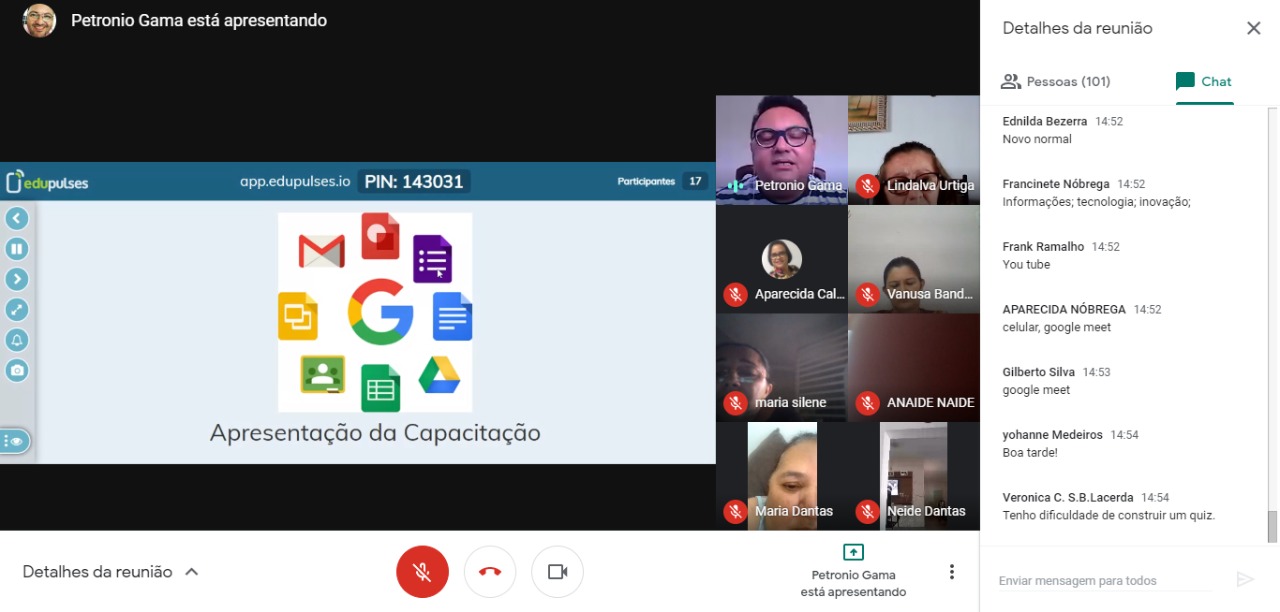 A metodologia de ensino ficou por conta do professor Petrônio Gama. Ele apresentou as possibilidades de uso das ferramentas gratuitas, explicando como criar atividades e murais em plataformas do Google Classroom, do Crosswordlabs, entre outros.
