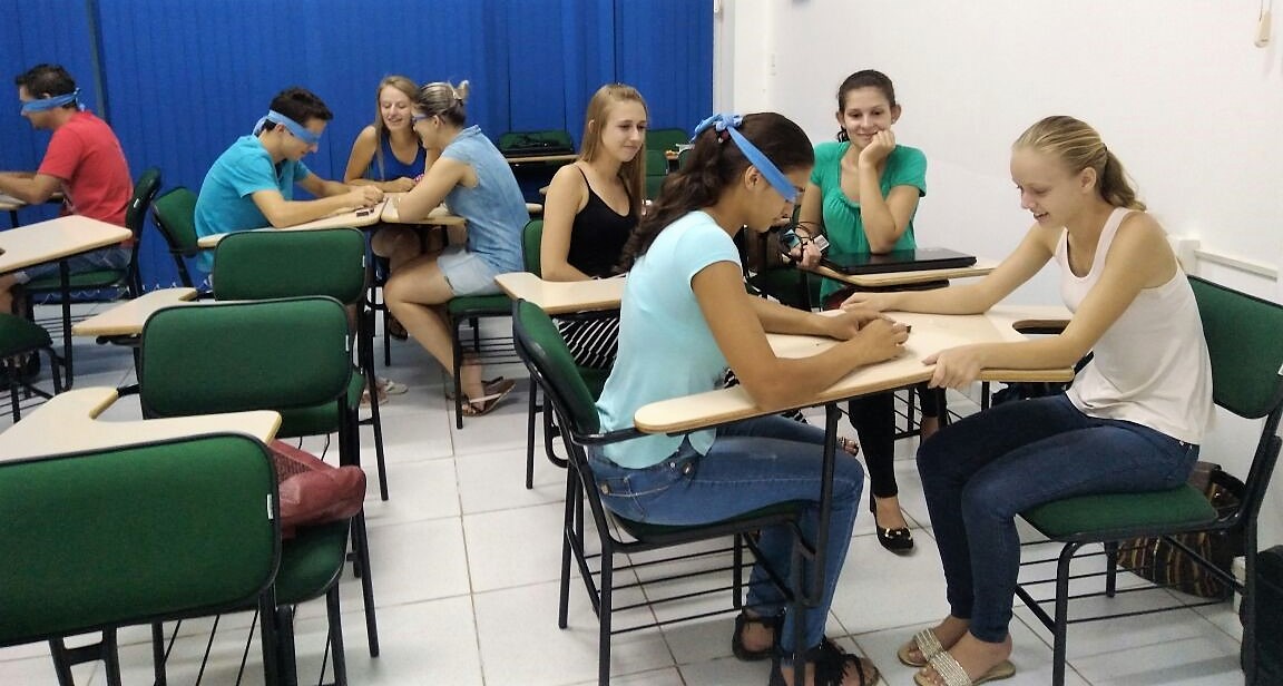 Nessa atividade, cada aluno deveria construir torres com os olhos vendados e sob orientação dos colegas. O objetivo da dinâmica era aproximar os alunos da disciplina de comportamento empreendedor e buscou demonstrar a influência de cada tipo de liderança na produtividade e satisfação do trabalho em grupo e desenvolver a capacidade de liderar.