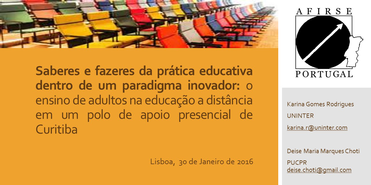 Durante o evento, foi realizada a apresentação e publicação do artigo Saberes e fazeres da prática educativa dentro de um paradigma inovador: o ensino de adultos na educação a distância em um polo de apoio presencial de Curitiba. O estudo foi baseado nos resultados das práticas tutoriais realizadas no polo.