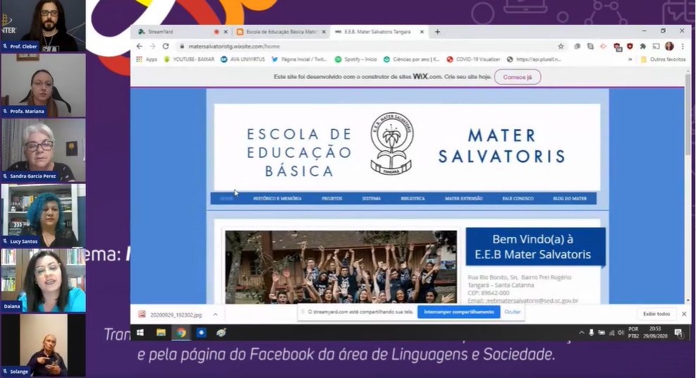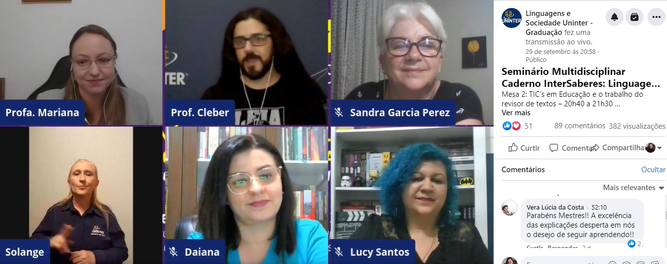 A professora Mariana Bonat, do curso de História da Uninter, mediou a transmissão junto com o professor Cleber. As transmissões foram realizadas através da página do Facebook de Linguagens e Sociedade e do canal do Youtube da ESE.