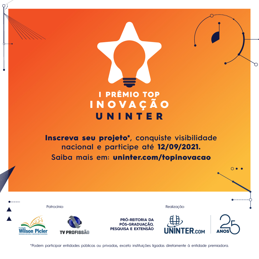 Para incentivar empreendedores a desenvolverem novos projetos, a Uninter lançou o Prêmio Top Inovação, que vai premiar e divulgar projetos de desenvolvimento de ações com resultados positivos para empresas ou comunidades. O prêmio está sendo desenvolvido em parceria com o Instituto Wilson Picler, sob a coordenação do professor Ricieri Garbelini (foto).