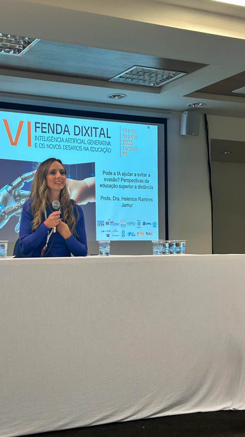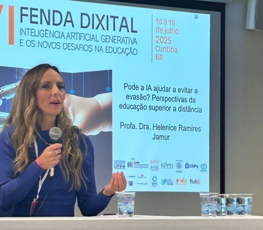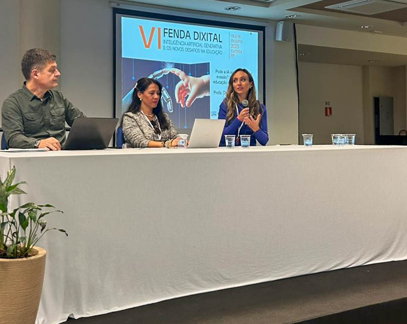 O Congresso Internacional Fenda Dixital aconteceu pela primeira vez no Brasil, entre os dias 16 e 18 de julho de 2025. A 6ª edição, com o tema central da Inteligência artificial e os novos desafios na educação, contou com a participação das professoras Glaucia Brito e Helenice Jamur, que representaram a Uninter em momentos de mesa-redonda, sessão de trabalhos e lançamento de livro.