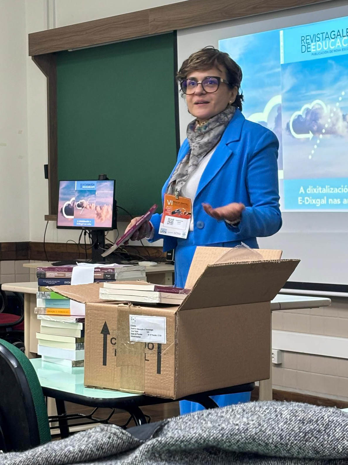 “Foi uma experiência extremamente enriquecedora. Este diálogo já existe no virtual por meio de lives, palestras e mesmo grupos nos aplicativos de comunicação, mas estar em um diálogo presencial com profissionais de diferentes países amplia nossa visão sobre os desafios e as possibilidades da educação em tempos digitais. Cada realidade traz contribuições singulares, e essa diversidade de perspectivas nos ajuda a pensar de forma mais crítica e situada. A troca com colegas da Espanha, Portugal e outras regiões foi, sem dúvida, um dos pontos altos do evento”, declara a docente sobre a participação no evento.