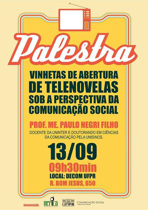 Nesta sexta-feira (13), o coordenador do curso de Publicidade, Propaganda e Marketing do Centro Universitário UNINTER, Paulo Negri, falará sobre vinhetas de abertura de telenovelas no Departamento de Comunicação (Decom) da Universidade Federal do Paraná (UFPR). Segundo Negri, as telenovelas fazem parte da cultura brasileira desde o final da década de 1960, por isso, a importância de estudar as vinhetas de abertura. A palestra faz parte da pesquisa que Negri está realizando no doutorado.