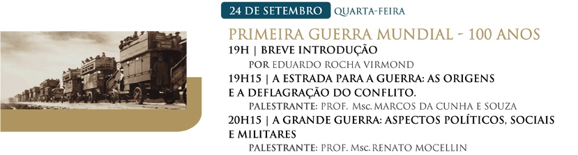 Entre os dias 23 e 25 de setembro, aconteceu a XX Semana de História no auditório da Secretaria de Estado da Cultura. O professor do Centro Universitário Internacional UNINTER, Marcos de Cunha Souza, apresentou o tema A estrada para a guerra: As origens e deflagração do conflito.