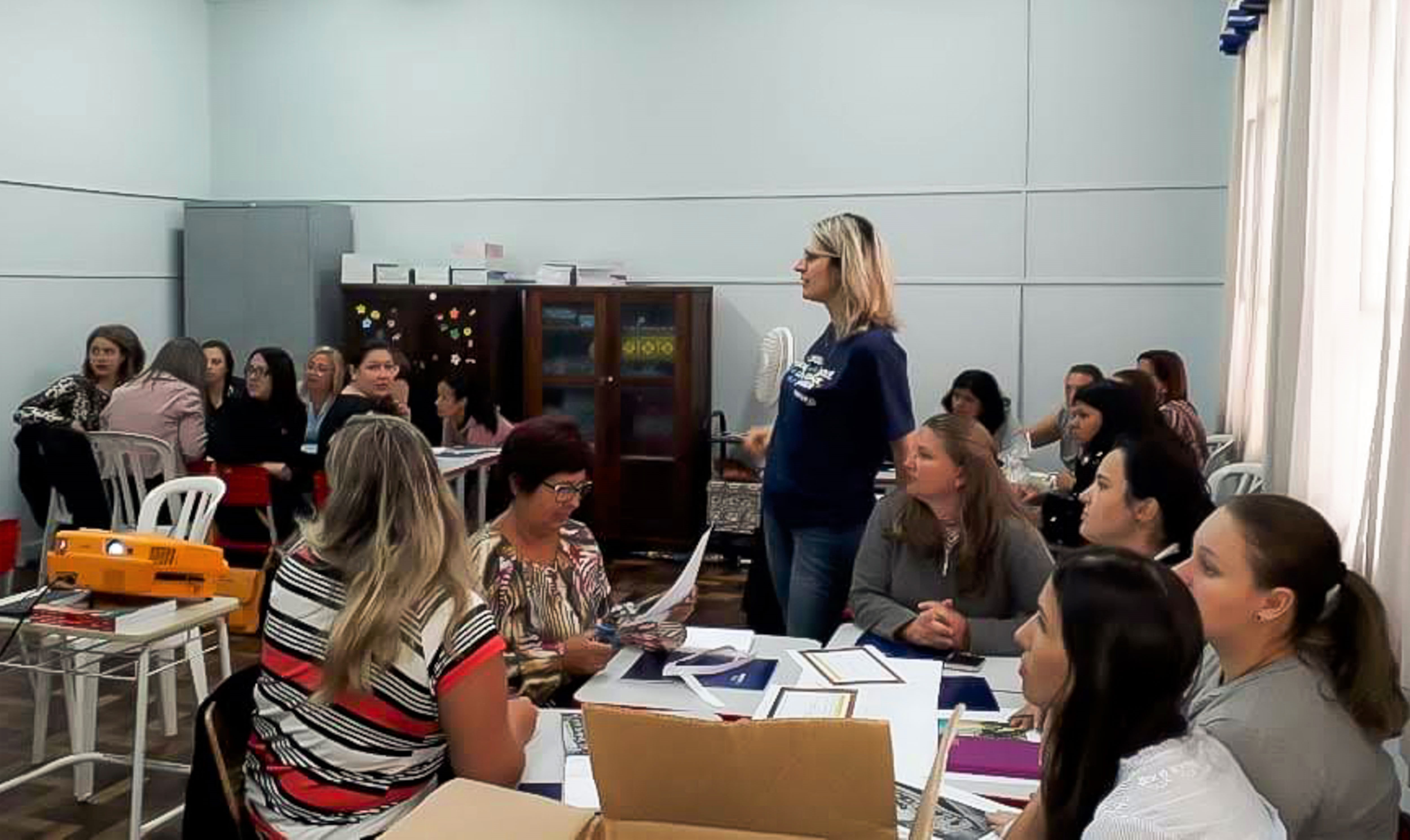 O campo da educação infantil ficou com a professora Vanessa Queirós, que trouxe ideias para atividades que possam atender à nova Base Nacional Comum Curricular (BNCC). “Fizemos vivência com circuito psicomotor, materiais sensoriais e auditivos. Os professores participam de forma bastante entusiasmada e agradeceram pelas ideias e as trocas significativas realizadas”, conta.