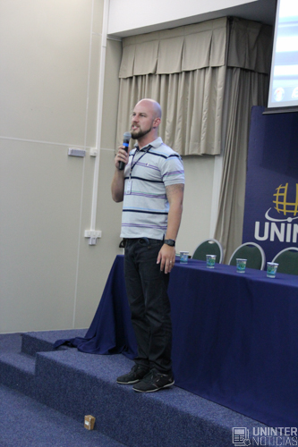 Para encerrar a noite, o professor Marcos da Cunha e Souza abordou o tema: Autoria e Plágio: Reflexos no Ensino Superior. Além de citar alguns casos como exemplo, Souza falou sobre como a difusão da internet agravou a quantidade de plágio nos trabalhos acadêmicos. “Como professores nos cabe orientar e alertar nossos alunos, assim como agir com dureza diante do problema”.