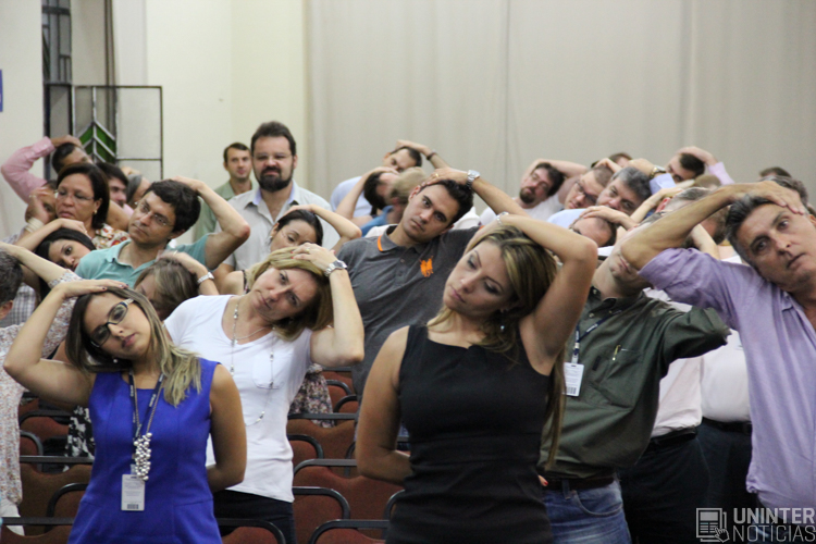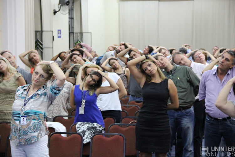 Durante o evento, a equipe de segurança do trabalho da UNINTER, representada pelo engenheiro Rafael Saito Oi, aproveitou a oportunidade para apresentar um vídeo sobre o treinamento da brigada de incêndio. Em seguida, o fisioterapeuta Lucas Hilgemberg falou sobre os exercícios da ginástica laboral e pediu atenção a alguns cuidados básicos, como beber água e fazer alongamentos.