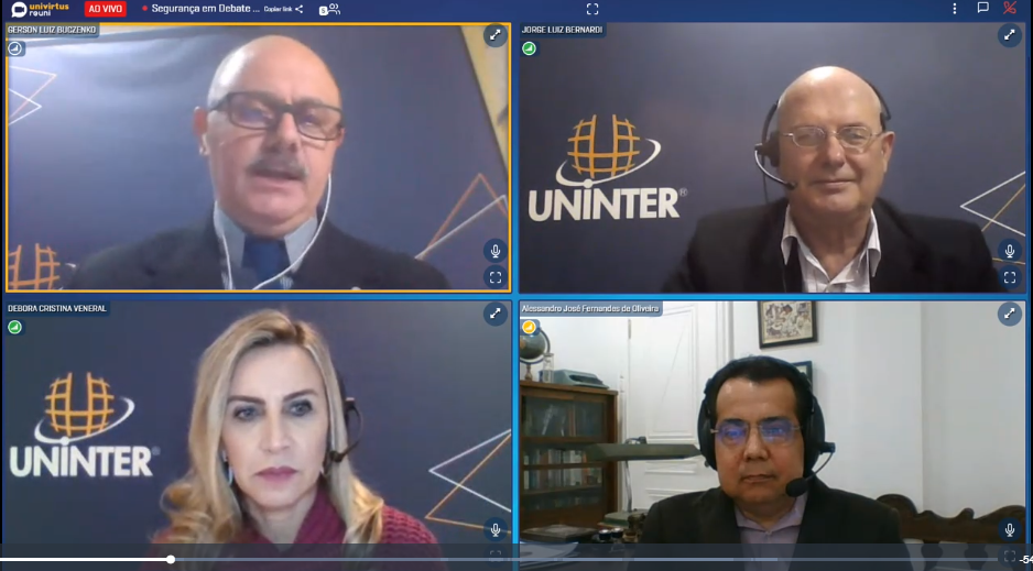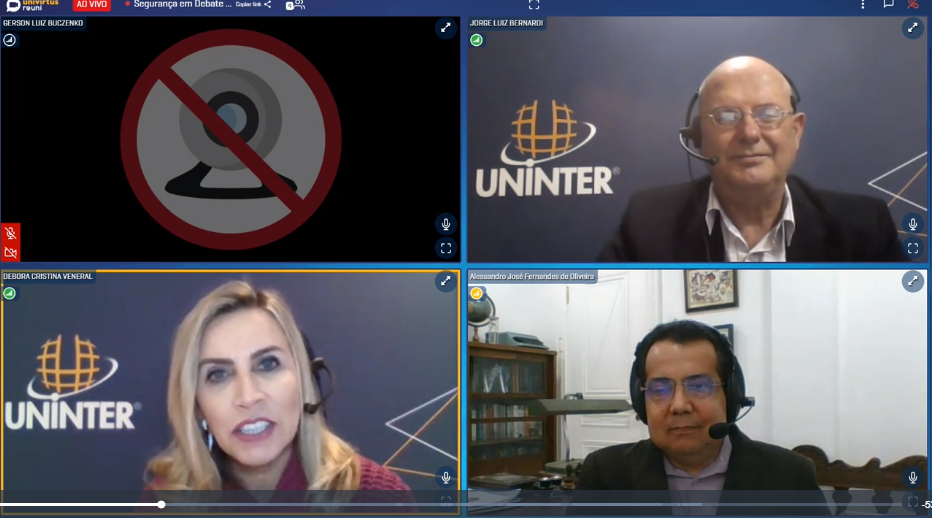 Para discutir diversos aspectos relacionados ao tema, a Escola de Gestão Pública, Jurídica, Política e Segurança da Uninter organizou o evento Segurança em Debate, que conta com 4 dias de atividades online, entre 20 e 23.jul.2020. O primeiro dia contou com a presença do professor Gerson Luiz Buczenko, da diretora da Escola Jurídica, Débora Veneral, e do vice-reitor, Jorge Luiz Bernardi. O convidado especial da noite foi o procurador da República Alessandro José Fernandes.