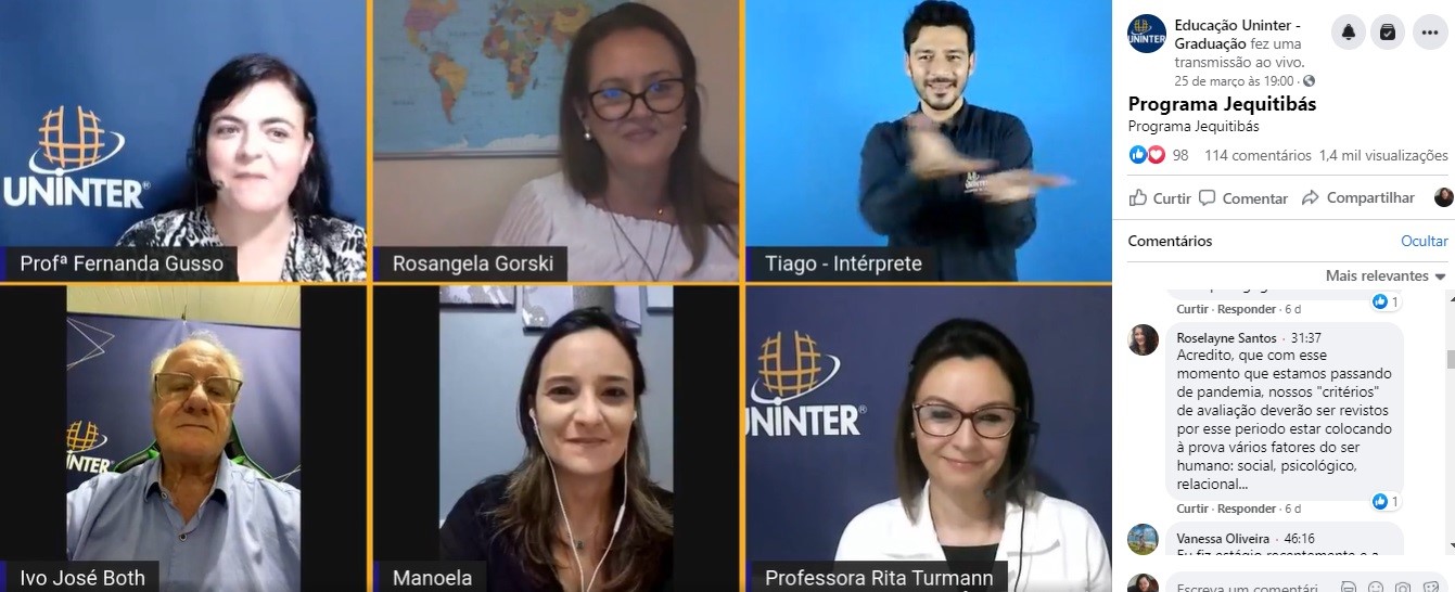 Uma das principais questões do ensino remoto para os estudantes do presencial é a participação em aulas realizadas por ferramentas de vídeo. Rosangela diz que muitos não gostam de abrir o microfone ou a câmera, mas que é preciso “ganhar eles pelo coração”. Ela conta que tem buscado estratégias para que essa participação aconteça e que eles sejam avaliados em diferentes âmbitos, através da escrita e dos jogos, por exemplo.