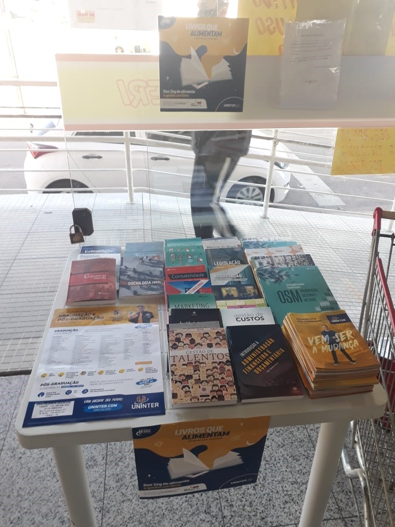 Pensando nisso, o polo da Uninter em Tubarão (SC) lançou no mês de maio o projeto Livros que Alimentam, com o propósito de ajudar o Lar da Menina. Um estande foi montado no hall de entrada de supermercados da cidade com livros da editora Intersaberes para doação, incentivando a troca de um livro por um alimento não perecível. Todo alimento arrecadado será doado para a instituição que apoia famílias carentes da região.