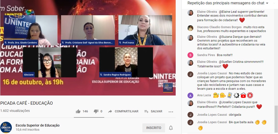 As profissionais abordaram o assunto na live A cidade como espaço educador na promoção da formação de cidadania da área de Educação, que foi tema dos estudos de caso realizados pelos alunos da ESE nesse último período de 2020. A transmissão ao vivo foi mediada pelas professoras Cristiane Benvenutti e Gisele Cordeiro, coordenadora da área de Educação.