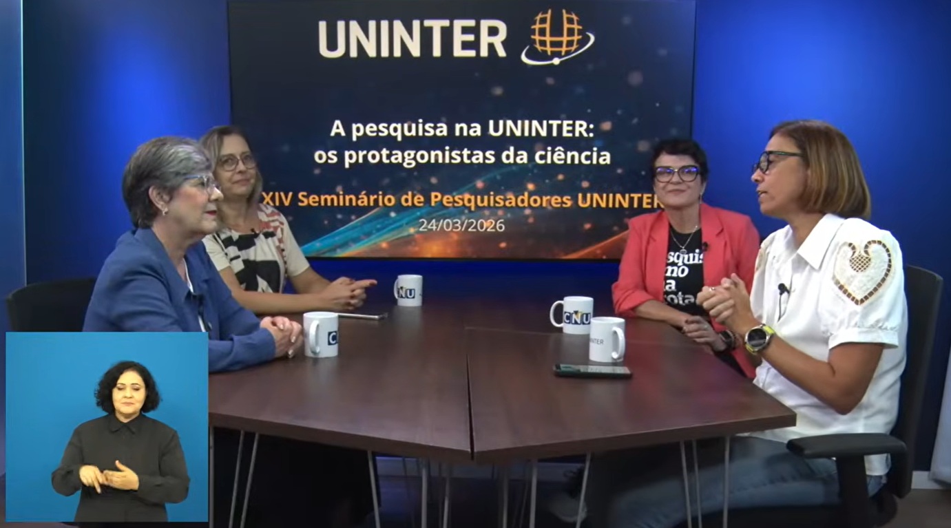 A XIV edição do Seminário de Pesquisadores Uninter, transmitido no dia 24 de março de 2026, enfatizou os protagonistas na Ciência. Mediado pela coordenadora de Pesquisas e Publicações Acadêmicas da Uninter, Desiré Luciane Dominschek Lima, o seminário teve como palestrantes as professoras Gláucia da Silva Brito, do Programa de Pós-graduação em Educação e Novas Tecnologias (PPGENT); Ivana Maria Saes Busato, da Escola Superio de Saúde Única, e Aline Mara Gumz Eberspächer, coordenadora de cursos de pós-graduação lato sensu.