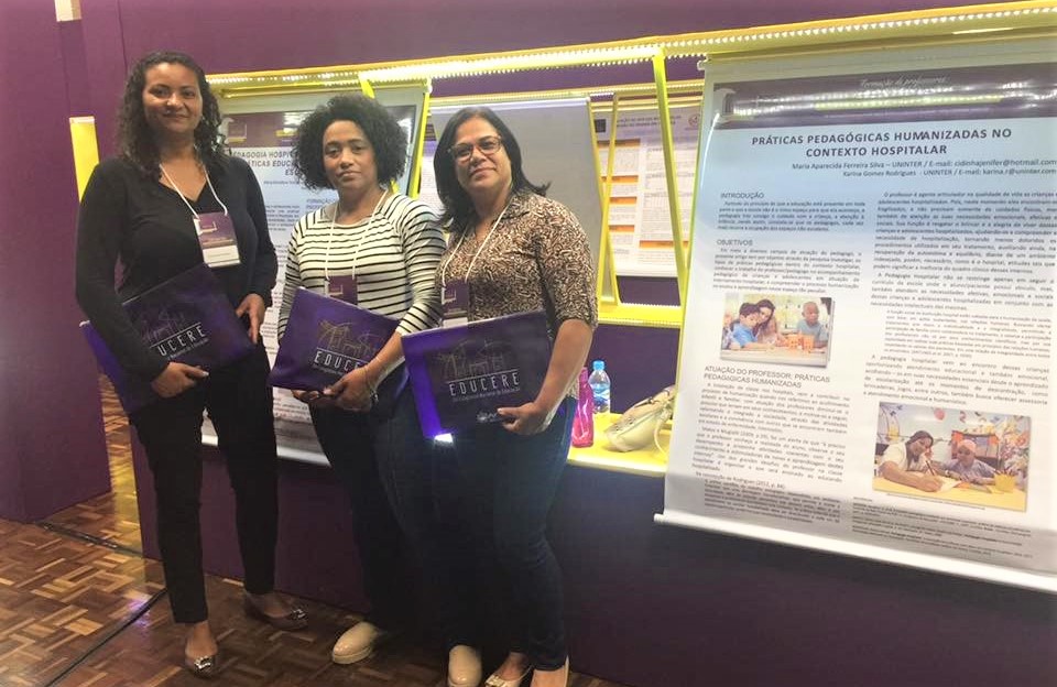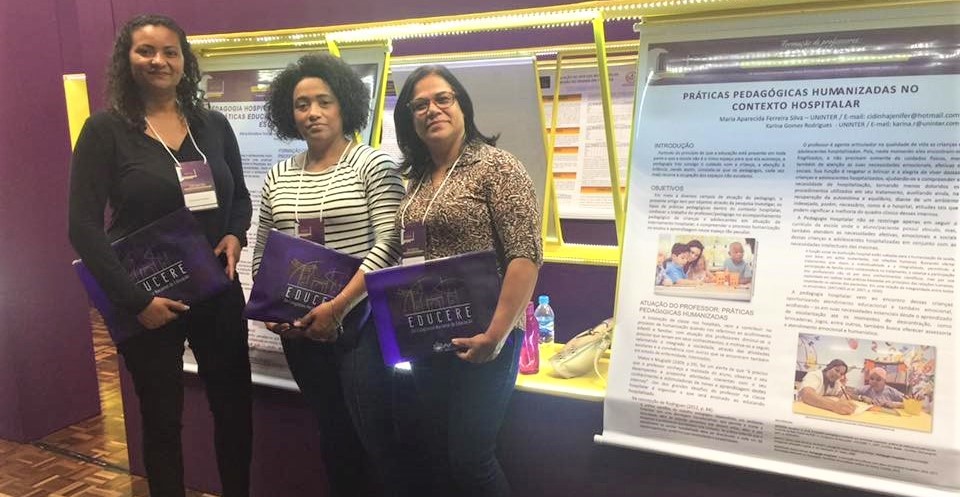 O trabalho foi apresentado durante o último Educere, que ocorreu na Pontifícia Universidade Católica do Paraná (PUC-PR), no mês passado. Maria Aparecida não foi a única a apresentar trabalho. Maria Madalena Tenório da Silva Dias, também aluna de Pedagogia, exibiu sua pesquisa “Pedagogia Hospitalar: O pedagogo e suas Práticas Educativas em espaços não escolares”. As duas alunas apresentaram suas produções sobre a prática pedagógica do professor em contexto hospitalar. O assunto em questão é o objeto de pesquisa do Trabalho de Conclusão de Curso das estudantes, que será apresentado no final do ano.