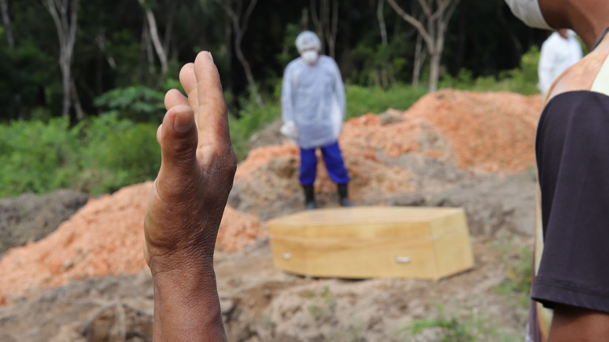 * Foto: Enterros de indígenas mortos pela Covid-19 em São Gabriel da Cachoeira no cemitério Parque da Saudade, familiares de Felisberto Cordeiro (Foto: Paulo Desana/Dabakuri/Amazônia Real/09/05/2020).