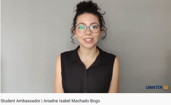 Outra selecionada em 2020 foi a curitibana Ariadne Isabel Machado Bogo, 23 anos, aluna Uninter de Tecnologia em Análise e Desenvolvimento de Sistemas. Radicada em João Pessoa (PB), representou a região nordeste. Tímida, ela se viu desafiada desde o processo seletivo, principalmente na fase que contemplava o envio do Selfie Vídeo. “Eu tinha vergonha, trabalhei muito esta questão dentro do programa, pois fui muito incentivada a me sentir confortável comigo mesma, tanto que hoje em dia participo de lives dando minha contribuição com desenvoltura”, comenta.