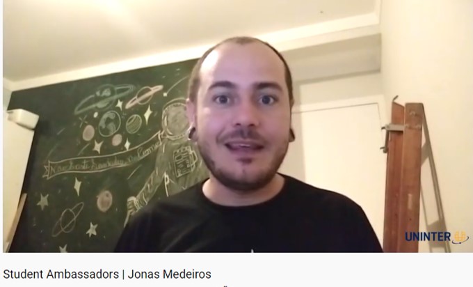 Jonas Medeiros, 34 anos, egresso Uninter da pós-graduação em Marketing, Estratégia e Inovação, nascido e residente de Blumenau (SC), foi um dos embaixadores representantes da região sul. Para ele, foi uma grande surpresa ter sido aprovado. Como um nômade digital, viajou pela Europa em 2018, onde conheceu 12 países em três meses. Regressou para o Brasil no início de 2019, permanecendo até abril, quando resolveu ir para o Peru, visitando posteriormente Argentina e Bolívia.