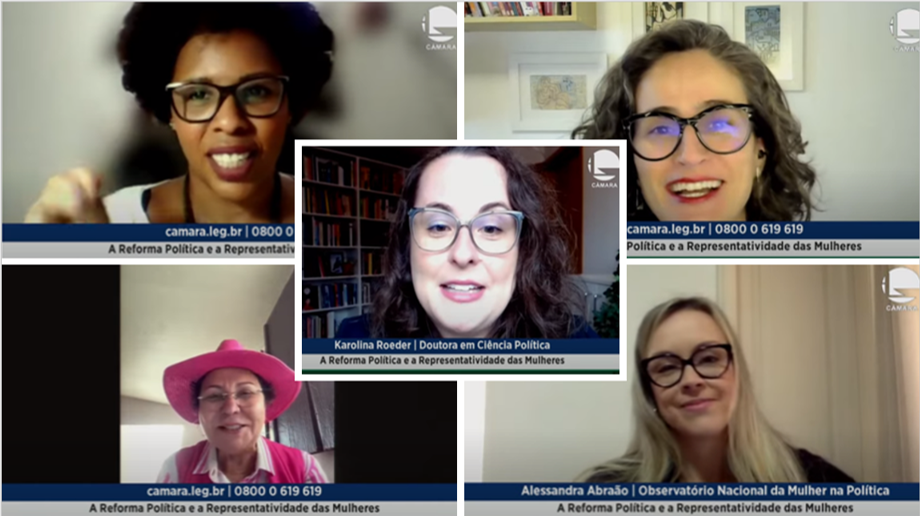 A cientista política e professora da Uninter Karolina Roeder foi convidada a palestrar em uma audiência pública da Câmara dos Deputados, no dia 27.ago.2021, falando sobre o impacto das novas regras eleitorais na participação das mulheres em cargos públicos eletivos.