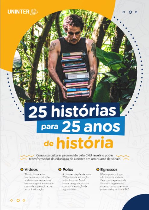 Já está disponível para leitura no ambiente digital a edição especial da revista com o resultado do concurso cultural promovido pela Central de Notícias Uninter (CNU) em comemoração aos 25 anos da Uninter, completados em junho de 2021. Para ler, basta clicar aqui.