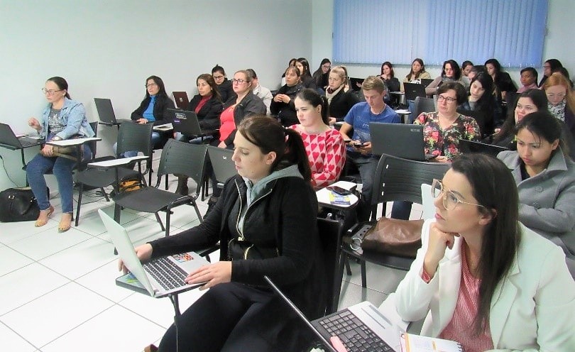 E também teve oficinais práticas, como a oferecida pela tutora do polo, Michelli Reolon, e pela auxiliar administrativa, Stéfani Glanert: “Oficina Básica do Excel”. É inegável que a informática está tendo mais relevância a cada dia que passa na vida das pessoas, e que “sua utilização já é vista como instrumento de aprendizagem e sua ação no meio social vêm aumentando de forma rápida entre as pessoas”, explica Rogério.