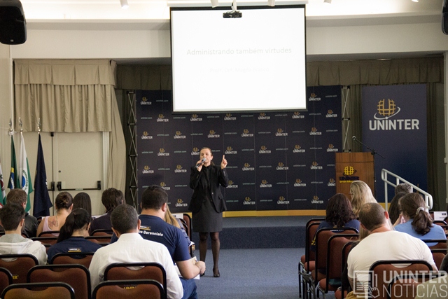 Entre os dias 01 e 03 de outubro, o Centro Universitário Internacional UNINTER realizou a Semana Acadêmica de Administração e Gestão, com o tema Administrando Virtudes. O evento foi realizado nos turnos da manhã e da noite no auditório do Campus Garcez e, além das palestras, contou com oficinas realizadas em salas de aula.