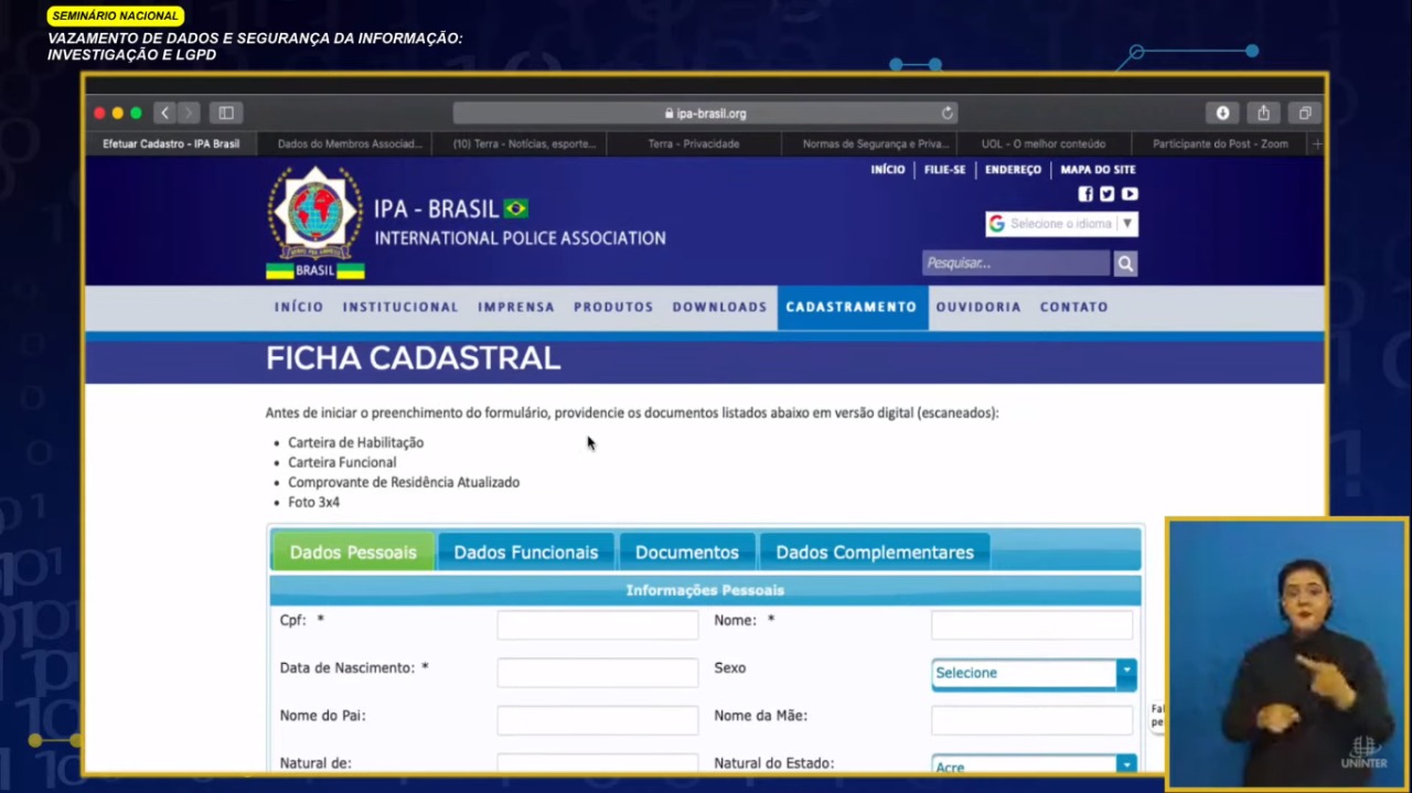 Nesta segunda-feira (29.mar.2021) ocorreu a abertura do seminário nacional Vazamento de dados e Segurança da informação: Investigação e LGPD, promovido pela Escola Superior de Gestão Pública, Política e Jurídica da Uninter. O evento tem duração de três dias e conta com a participação de pesquisadores e representantes de entidades. Na missão de combater crimes cibernéticos, entram em debate diferentes temáticas, entre elas o problema do vazamento de dados e a recente Lei Geral de Proteção de Dados, sancionada pelo governo no ano passado.