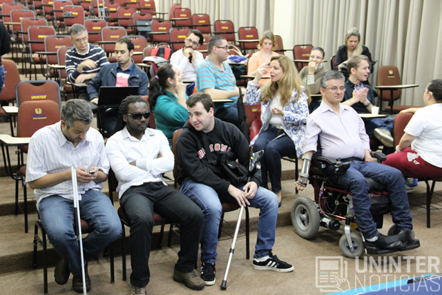 A noite foi de debates sobre o mercado de trabalho e direitos para alunos com algum tipo de necessidade especial. A coordenadora do programa, Leomar Marchesini, realizou a abertura do evento citando a importância desse contato entre os alunos e os formados que já atuam no mercado, com a interação e o compartilhamento de informações que contribuam e estimulem os futuros profissionais. A professora Leomar ainda conta planos da área para o futuro: “Pretendemos formar um grupo forte, coeso, com a nossa identidade do SIANEE UNINTER, para que seus membros troquem informações, sobretudo a respeito de empregabilidade, novas leis e direitos. Este grupo poderá ser uma referência para empresas, na busca de profissionais qualificados”, completa.