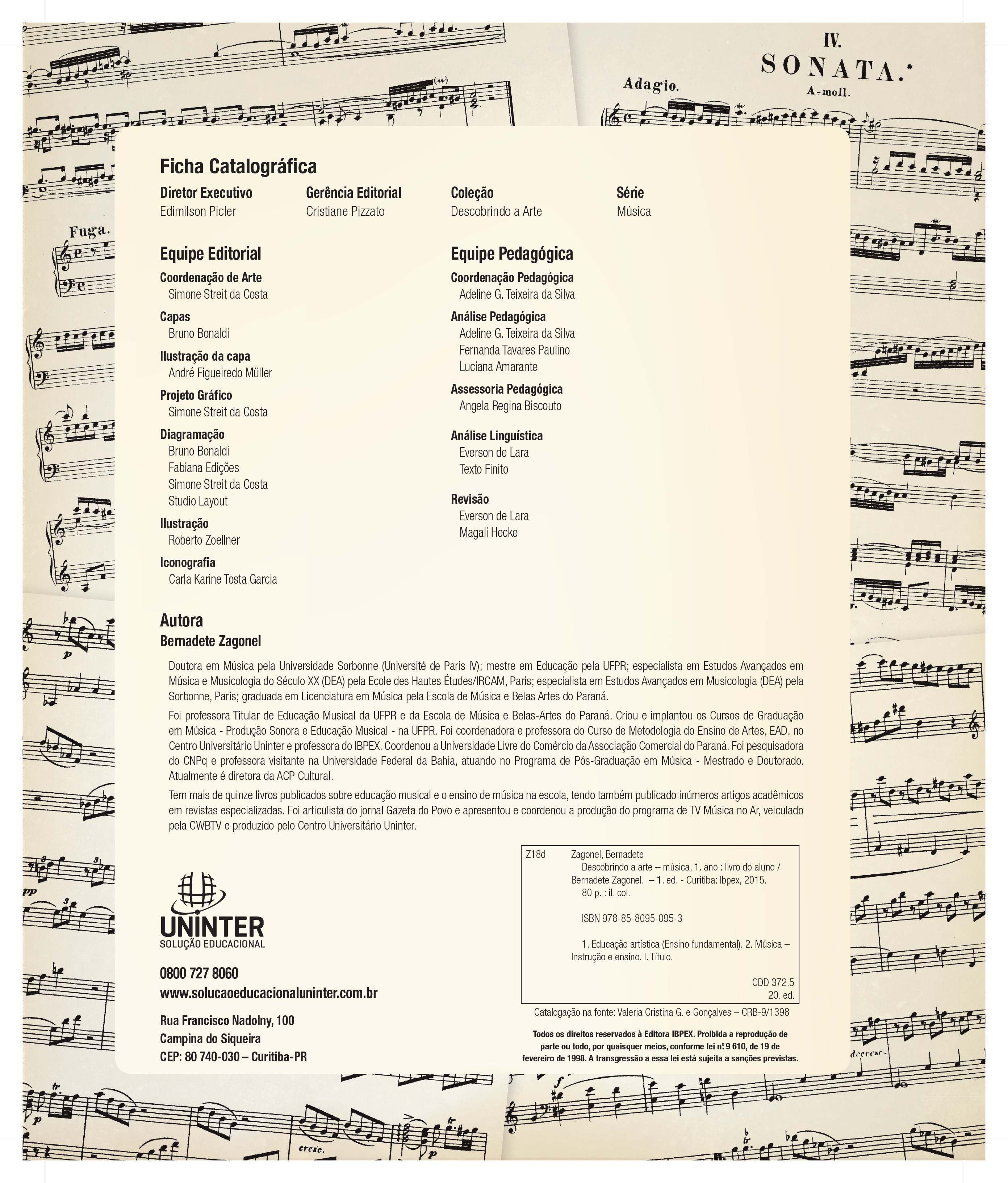 Timbre, altura, intensidade, duração, escrita musical, estilos e gêneros musicais, são alguns dos temas abordados na coleção da autora Bernadete Zagonel, doutora em música pela Universidade de Sorbonne (Paris).