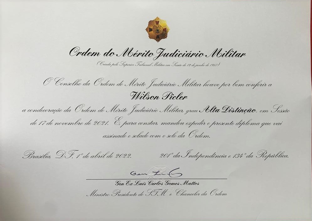 O professor Wilson Picler, chanceler do Grupo Uninter, foi homenageado pelo Superior Tribunal Militar (STM) com uma insígnia de alta distinção (Ordem do Mérito Judiciário Militar) pela dedicação e trabalho em prol da educação brasileira. “É mais do que gratificante e estou emocionado. É um reconhecimento do empenho pela educação”, diz Picler.