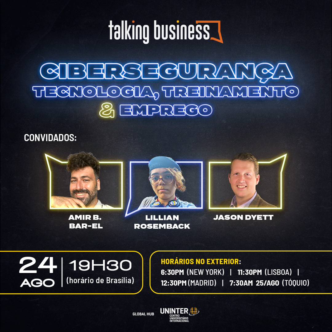 A cada vinte e quatro horas uma nova atualização é lançada no mundo virtual, uma nova rede, um novo software. O universo artificial chega ao nível de parecer algo cosmológico de tamanhas camadas que foram e são desenvolvidas o tempo inteiro. E quanto mais espaço as tecnologias ganham, sejam nos meios individuais ou corporativos, mais lugar se dá para os invasores. É com base nos perigos do espaço virtual que a Uninter Global Hub realiza a próxima edição do Talking Business com o tema “Cibersegurança: tecnologia, treinamento e emprego”.
