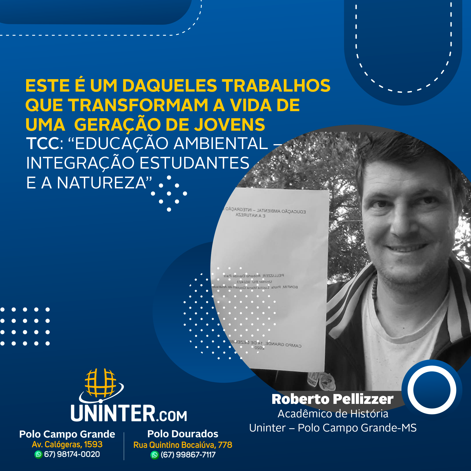 Chegar ao momento da defesa do trabalho de conclusão de curso, o temido TCC, é motivo de grande alívio para qualquer estudante do ensino superior. Mas há casos em que a satisfação é ainda maior: quando o trabalho supera as expectativas e muda a vida do aluno e da comunidade. Assim aconteceu com Roberto Pellizzer, aluno de História do polo da Uninter em Campo Grande (MS).