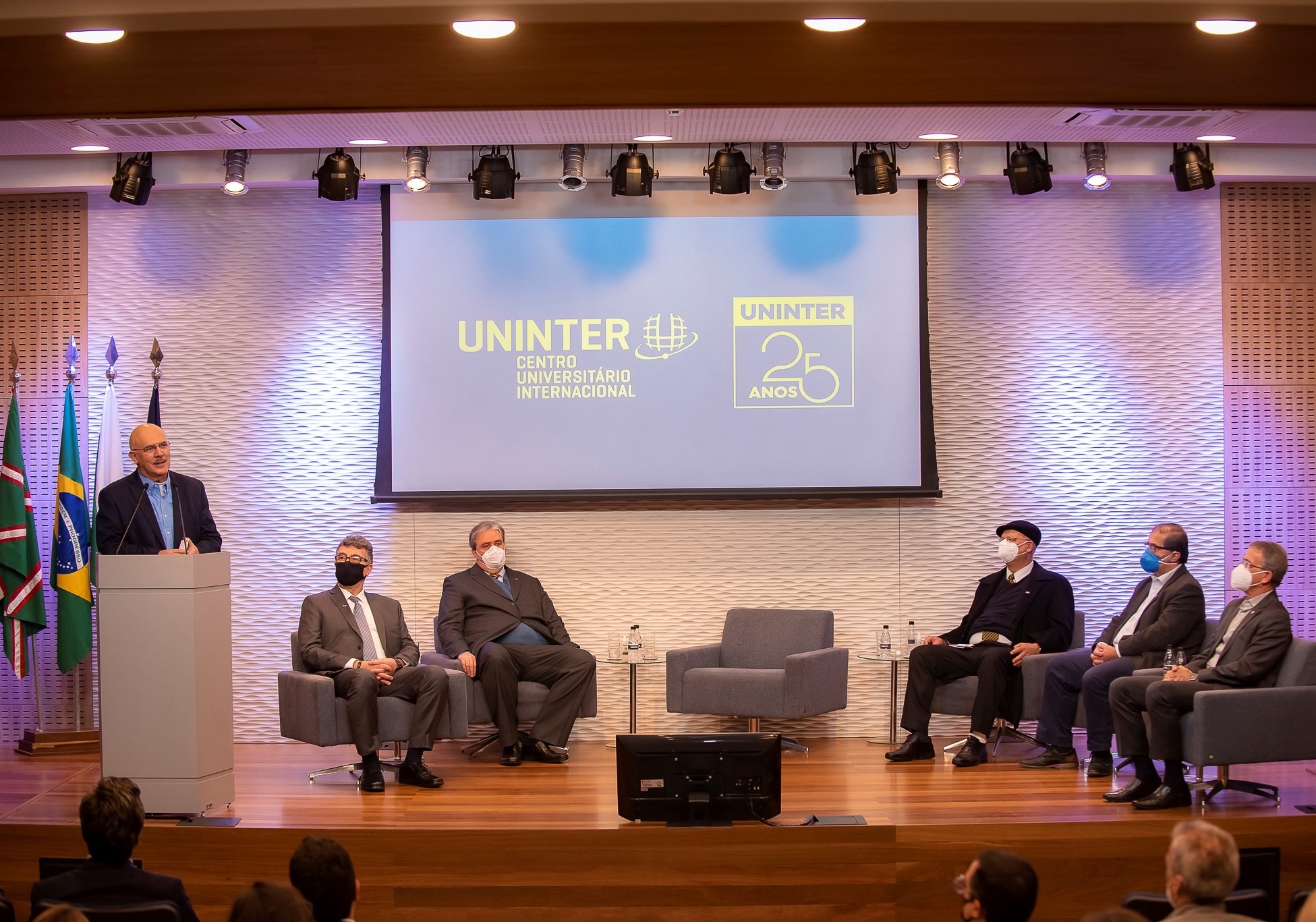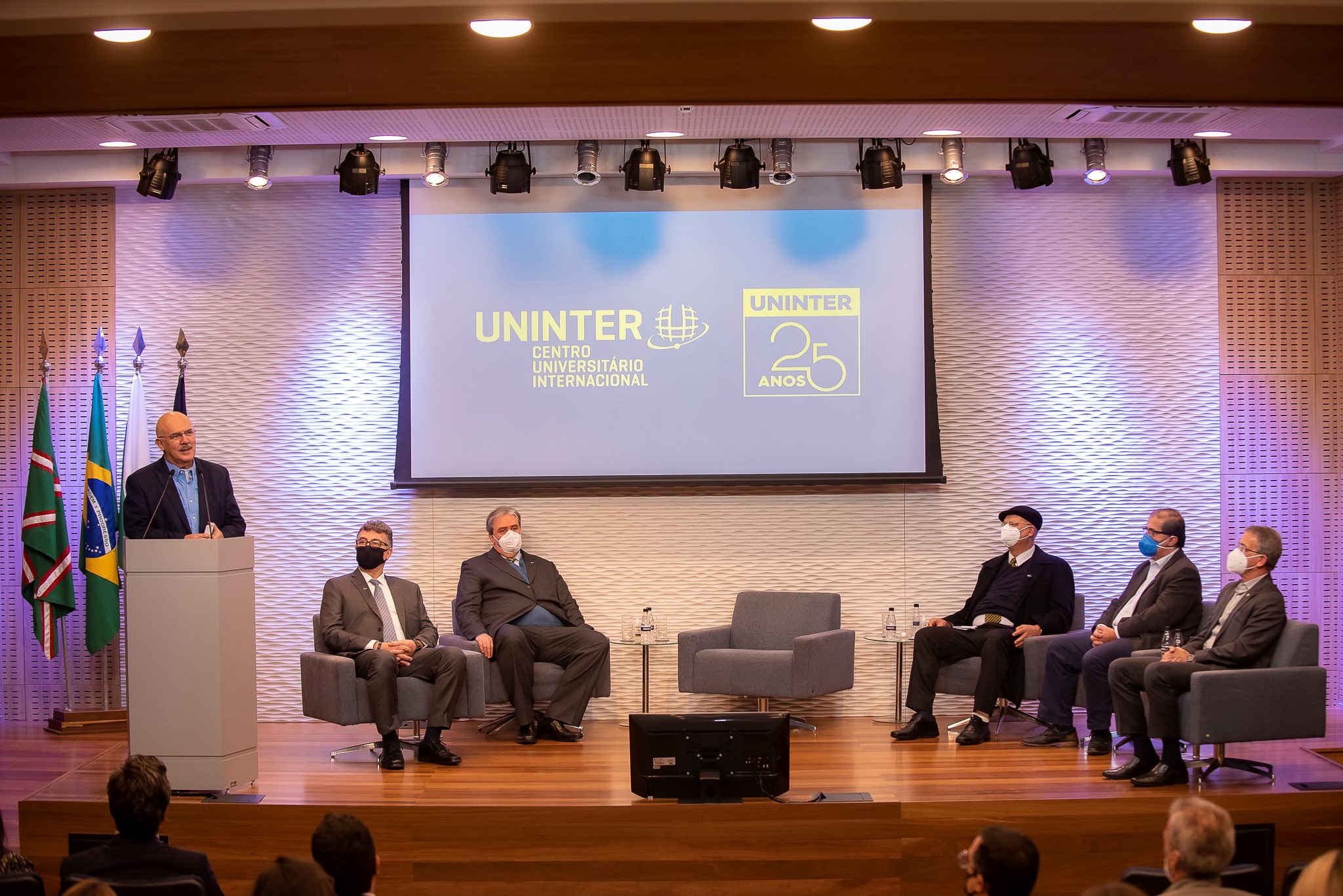 Além do ministro Milton Ribeiro e do professor Wilson Picler, o evento que abriu as comemorações dos 25 anos do Grupo Uninter, com transmissão simultânea para todo o Brasil, contou com as presenças do vice-reitor da instituição, Jorge Bernardi, do CEO da Uninter, Marco Eleutério, do presidente do Conselho de Educação do Paraná, João Carlos Gomes, e do presidente da Empresa Brasileira de Serviços Hospitalares (EBSERH), Oswaldo Ferreira, que compuseram o palco. Os reitores da Universidade Federal do Paraná (UFPR), Ricardo Marcelo Fonseca, e da Universidade Tecnológica Federal do Paraná (UTFPR), Marcos Schiefler Filho, também estiveram presentes, além de outros pró-reitores e diretores de Escolas Superiores da Uninter, como convidados especiais.