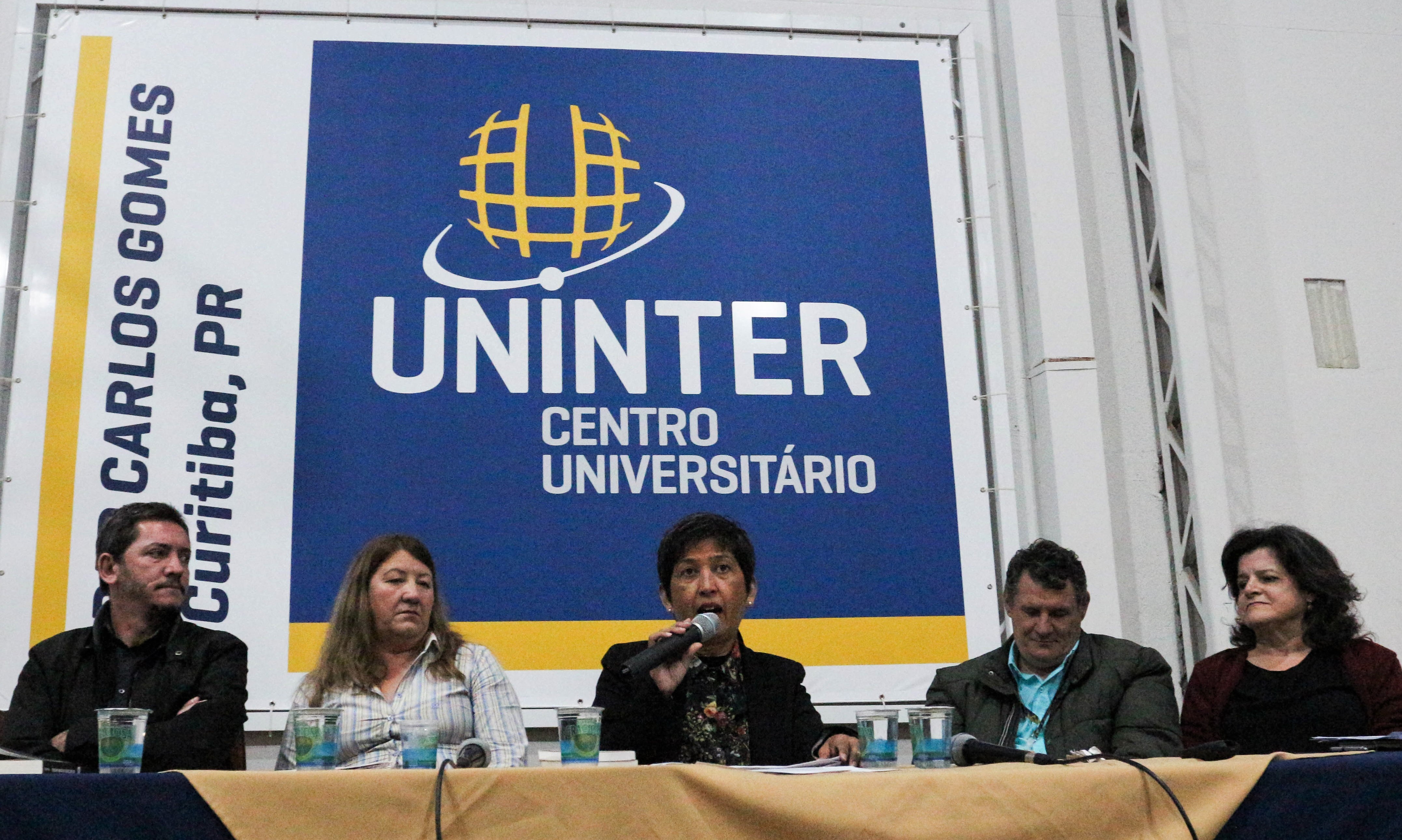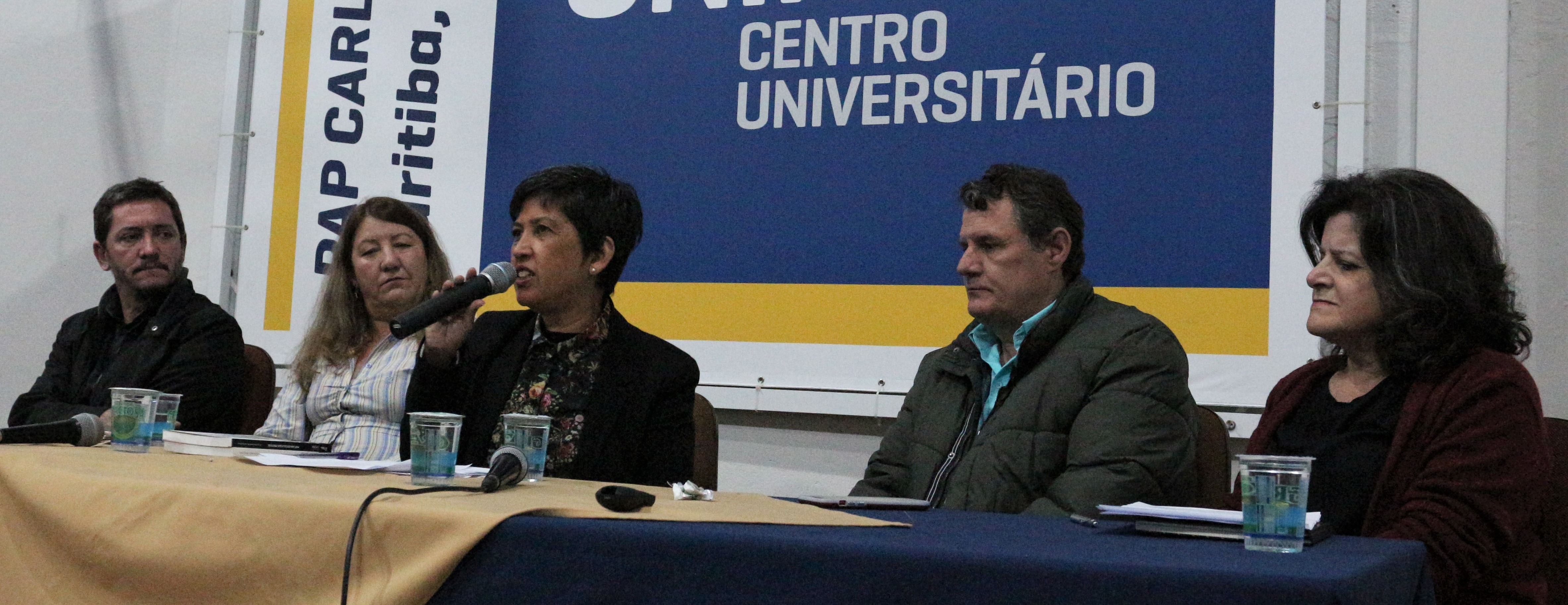 O evento contou com uma bancada composta por profissionais ligados à área: Denise Erthal, coordenadora do curso de Gestão das Organizações do Terceiro Setor; Dorival da Costa, coordenador do curso de Serviço Social; Jandicleide Evangelista, coordenadora do curso de Educador Social; Mauri König, professor do curso de Jornalismo; e Jussara Gouveia, conselheira tutelar em Curitiba.