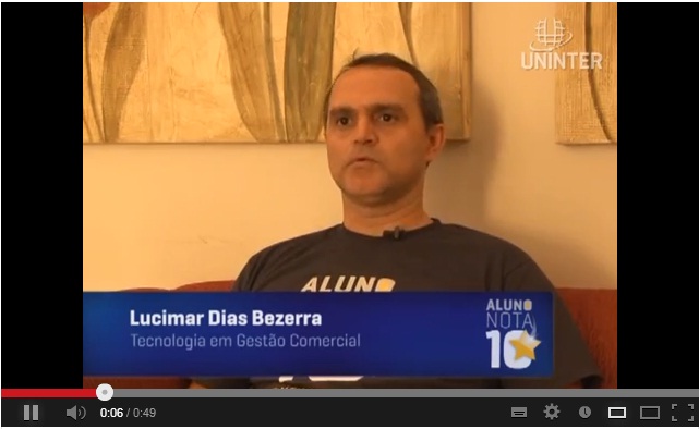Clique na imagem abaixo para assistir o depoimento do aluno Lucimar Dias Bezerra, do Curso de Tecnologia em Gestão Comercial – Centro Universitário UNINTER.