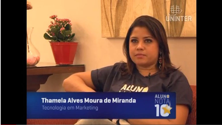 Clique no vídeo abaixo para assistir o depoimento da aluna Thamela Alves Moura de Miranda, do curso de Tecnologia em Marketing — Centro Universitário UNINTER.
