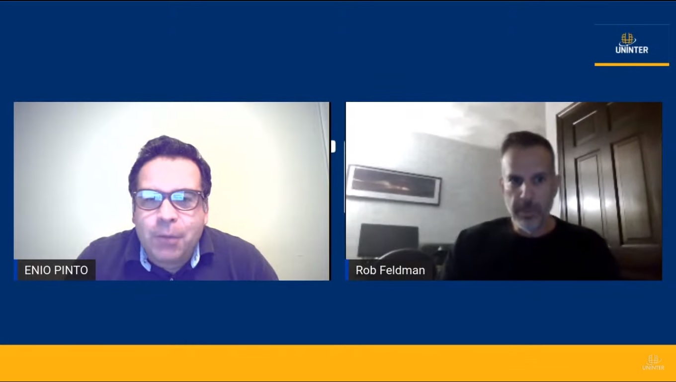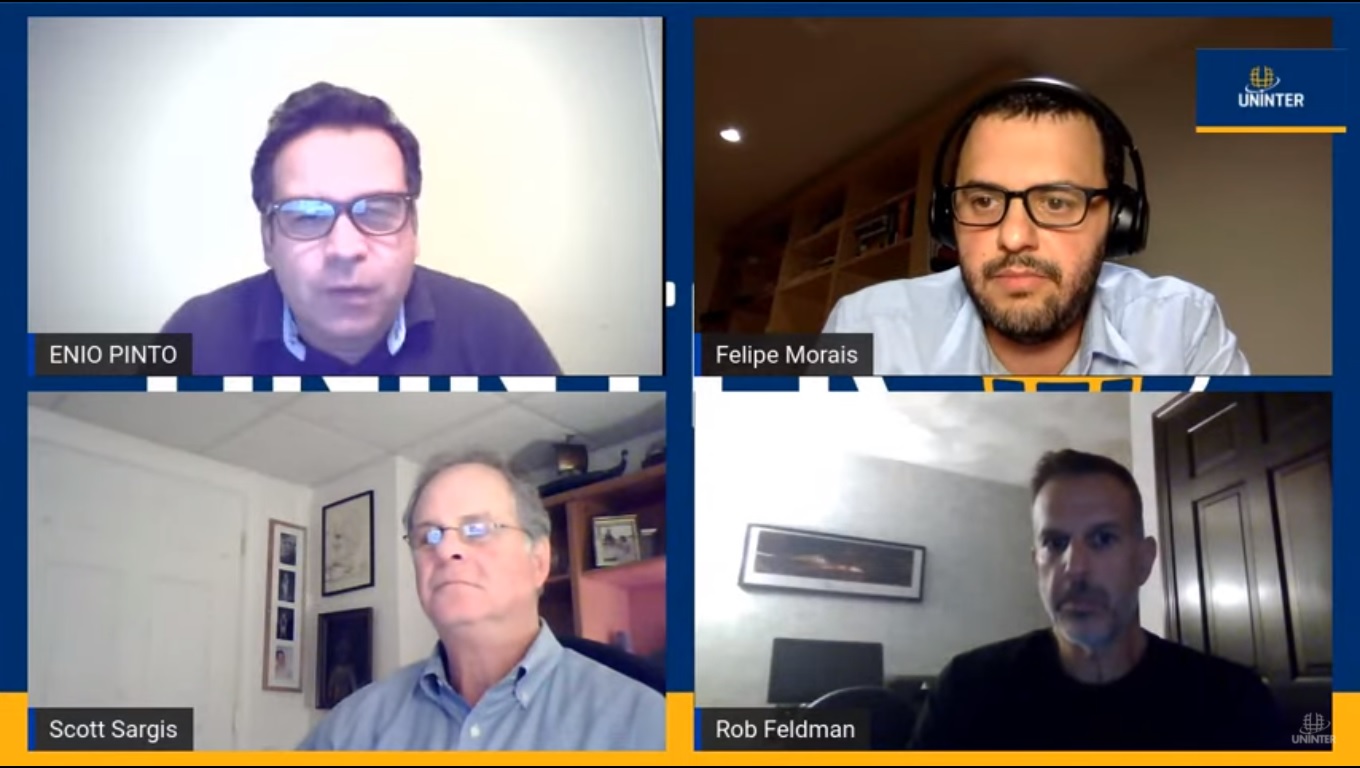 O mediador da conversa foi o parceiro da Uninter em programas de educação global de empreendedorismo e inovação no International Entrepreneurship Center, Enio Pinto. Ele recebeu Rob Feldman, CEO e fundador da College Interactive, Scott Sargis, diretor administrativo da IEC Partners, e Felipe Morais, executivo de desenvolvimento de negócios no hospital Mass General Brigham.