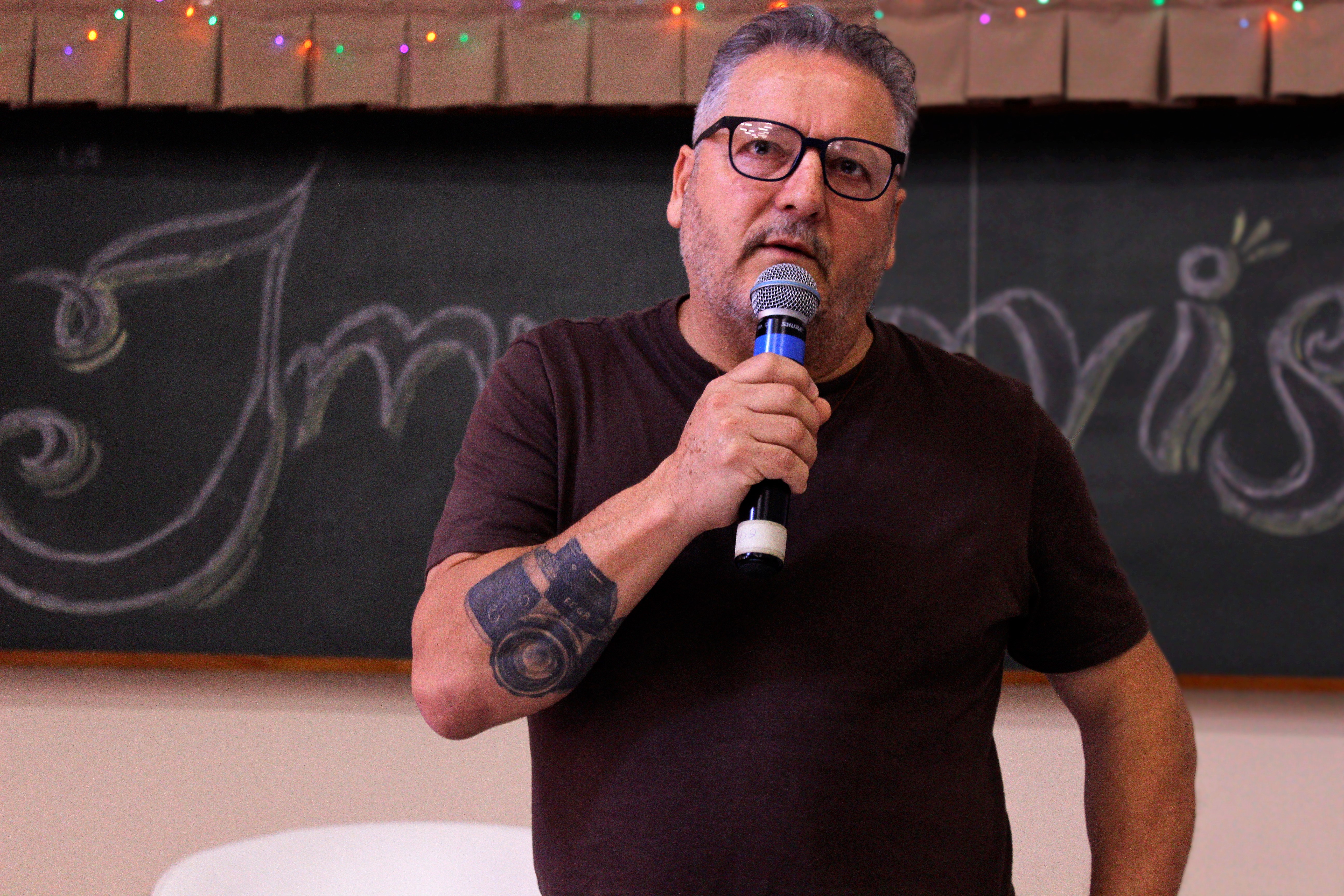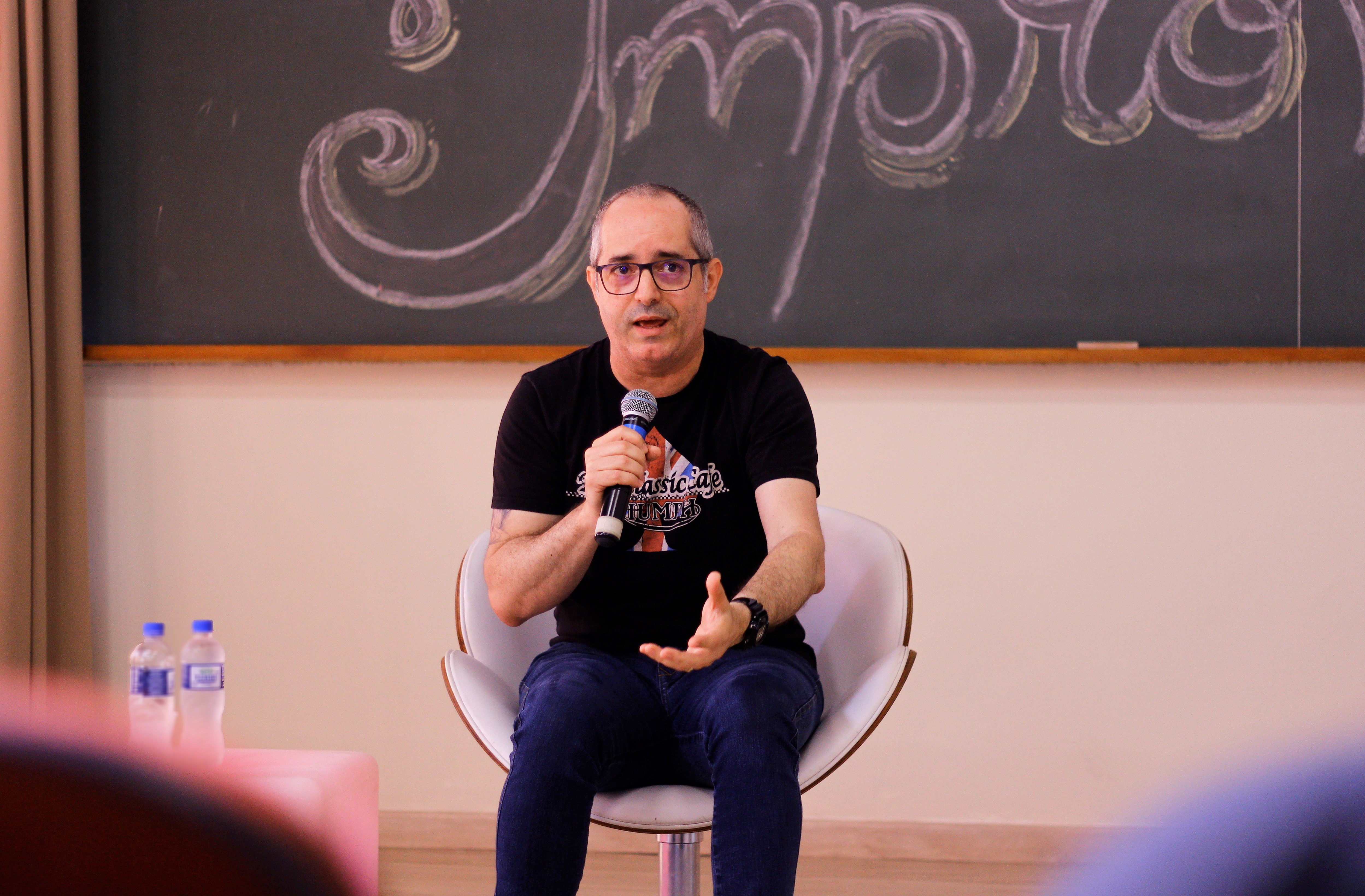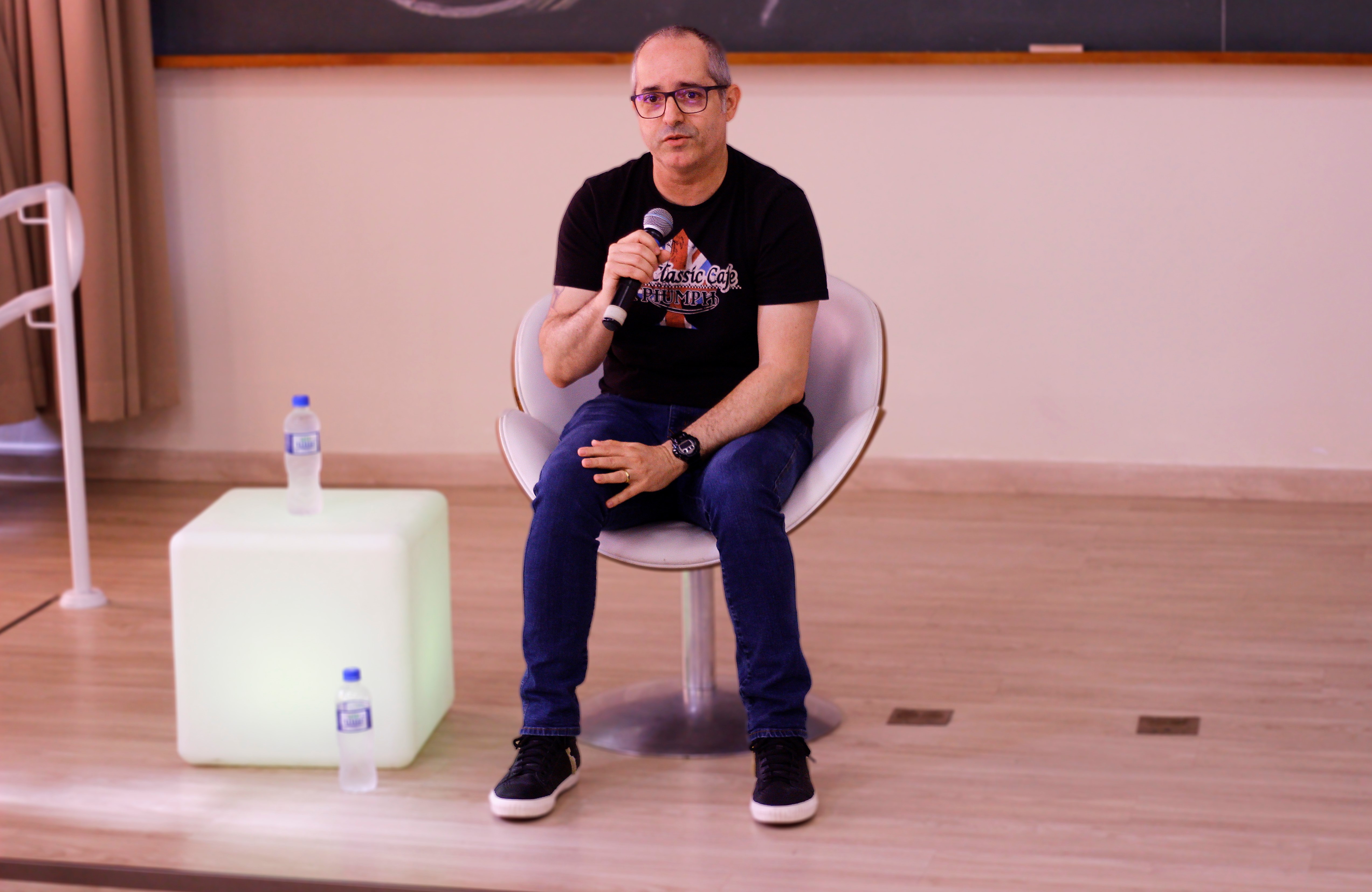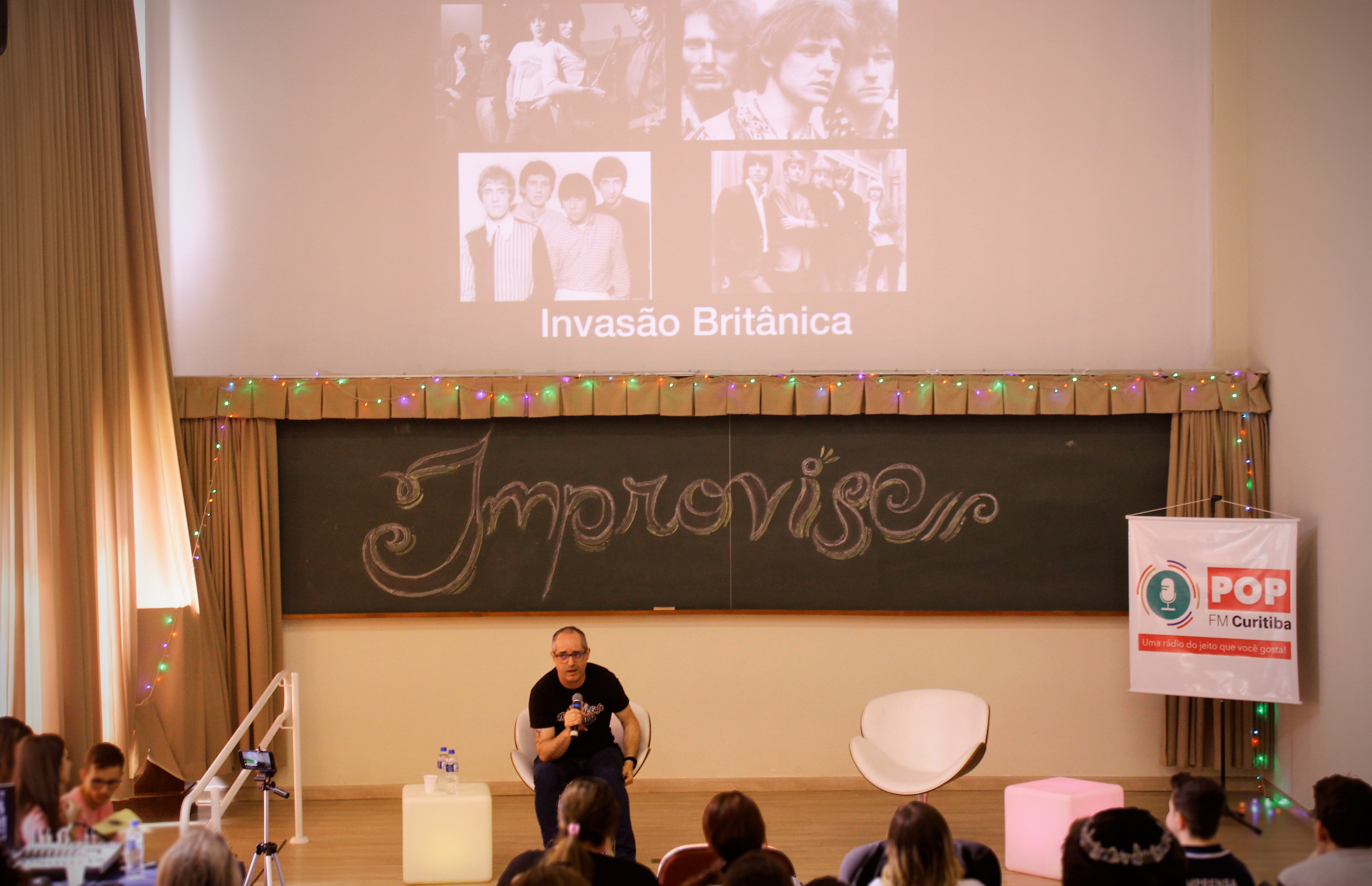 Otacílio, carinhosamente conhecido como Tatá, abriu a sessão com uma palestra sobre rock and roll, fazendo muitos alunos chacoalharem a cabeça. Tatá levou os estudantes a viajar pela história desse estilo musical, desde suas raízes com o blues de Robert Johnson, até os anos 1990 com o grunge do Nirvana.