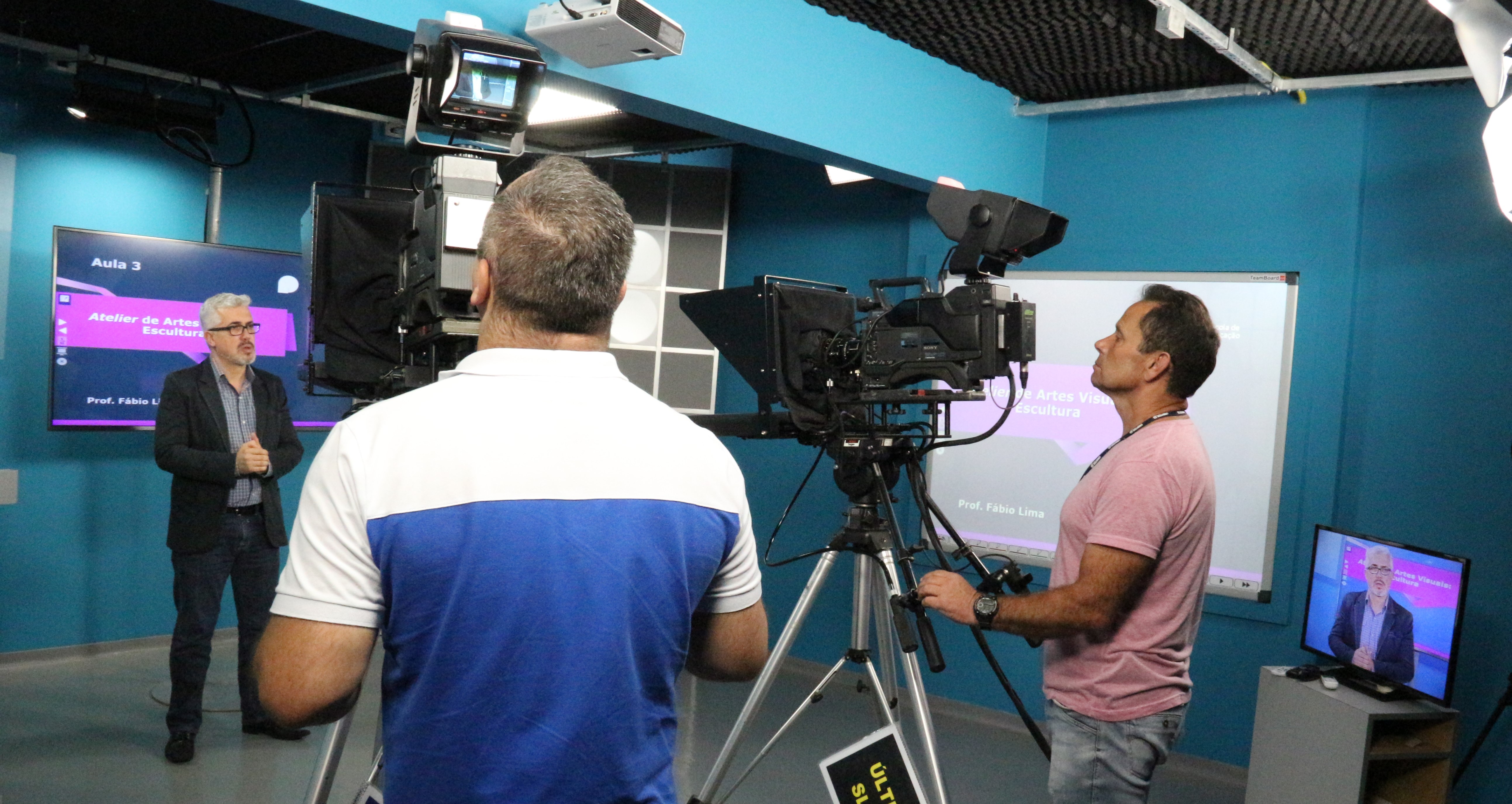 Os estúdios possuem equipamentos como quadro interativo, acesso à internet, tela interativa, contato com alunos via telefone ou via chat. São essas tecnologias que dão o suporte necessário de gravação de uma aula a distância. Antes de encarar as câmeras, os professores passam por um processo de capacitação técnica no estúdio.