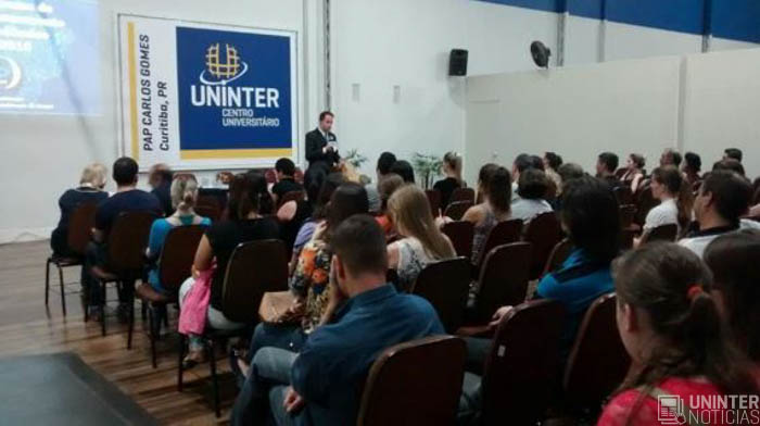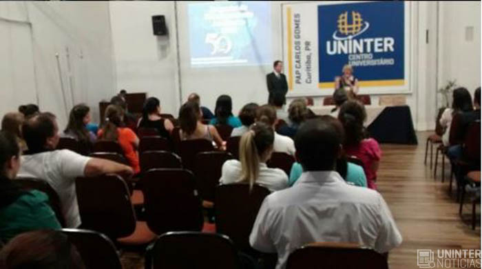 Tutores e coordenadores pedagógicos dos cursos de Administração e Ciências Contábeis do polo Carlos Gomes da UNINTER, em Curitiba (PR), participaram no dia 8 de outubro de uma reunião com o delegado adjunto do Conselho Regional de Administração, Júlio César Cristofer Vieira.