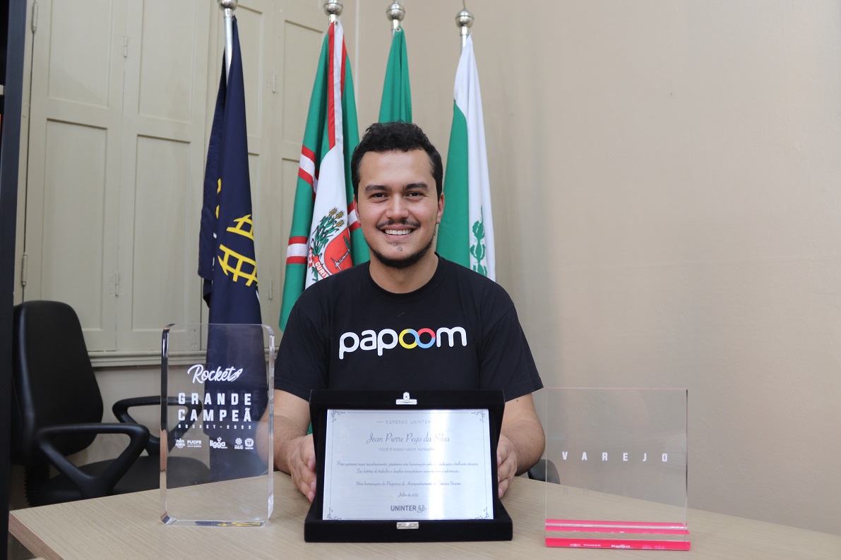 A ideia de um aplicativo ficou na cabeça do egresso e, no final de 2019, decidiu fazer um curso de Design Thinking no Vale do Pinhão, setor da Prefeitura de Curitiba voltado ao desenvolvimento. O curso o ajudou a entender como aquela ideia poderia sair do papel. Então, procurou o instrutor do curso, Guilherme Pinheiro, para ser seu mentor, e Rodolfo Santana, atualmente sócio e CEO da Papoom.
