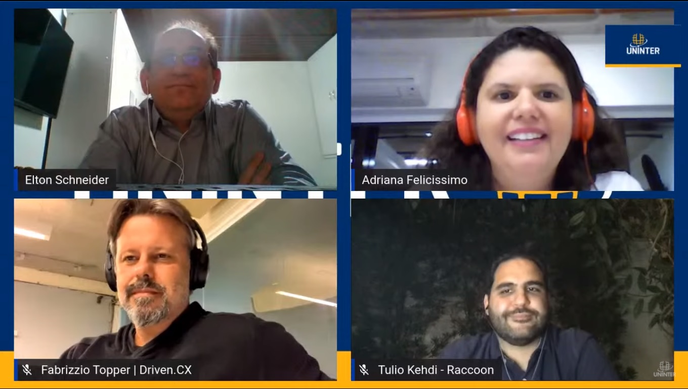 Diretor da Escola de Negócios da Uninter, Elton Schneider recebeu para essa conversa Tulio Kehdi, fundador e Diretor de Operações da Raccoon Marketing Digital, Adriana Felicíssimo, Gerente de Estratégias Digitais da Opus Múltipla, e Fabrizzio Topper, CEO da Driven.CX. “De cinco anos para cá, as empresas vêm investindo em tecnologia para melhorar seus negócios. Em 2020, vem uma pandemia que obriga as empresas a tomar atitudes diferenciadas. Algumas fecharam as portas e outras levaram seus funcionários a trabalhar em casa”, contextualizou Elton.