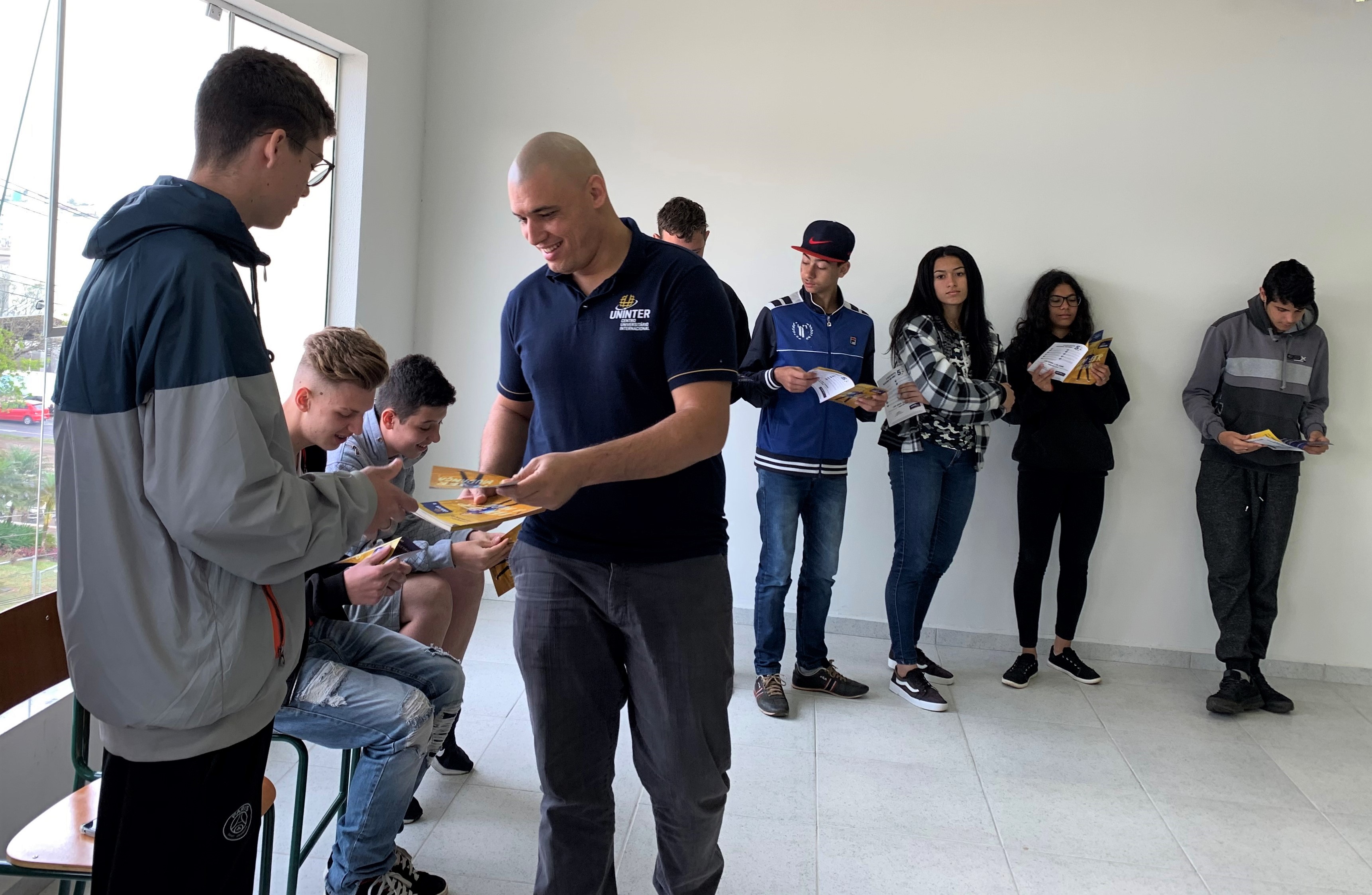A adolescência costuma ser um período turbulento, em que os jovens se sentem inseguros e com a mente repleta de dúvidas sobre a vida. Em Chapecó (SC), o polo Uninter ofereceu aos estudantes da rede estadual de ensino uma palestra motivacional e reflexiva, proferida pelo coach Eduardo Weydmann, intitulada “Qual é o Meu Caminho?”.