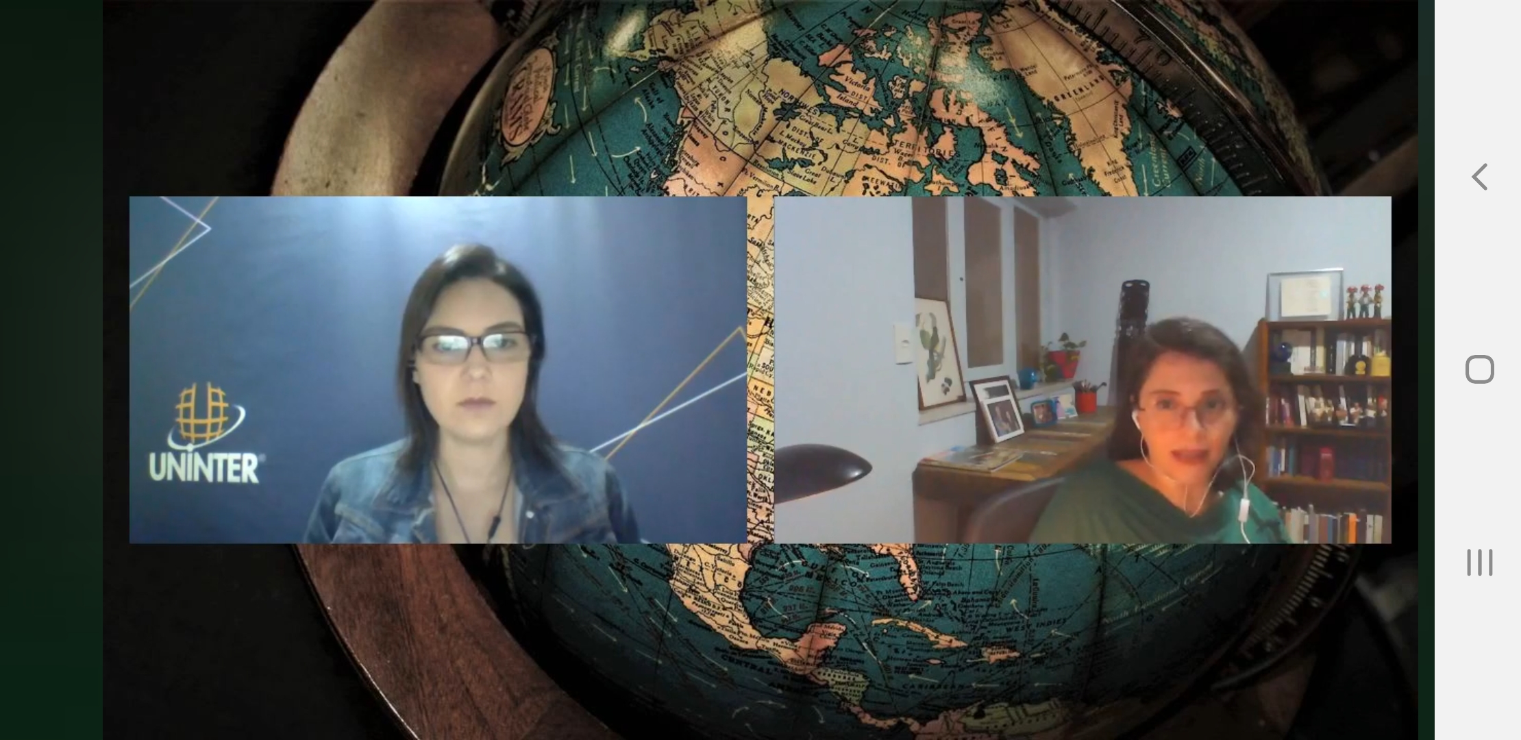 Participaram da conversa a coordenadora de RI da Uninter, Caroline Cordeiro, e a doutora em Sociologia pela Universidade Estadual de Campinas (Unicamp) e estudiosa da diplomacia, Karla Lisandra Gobo.