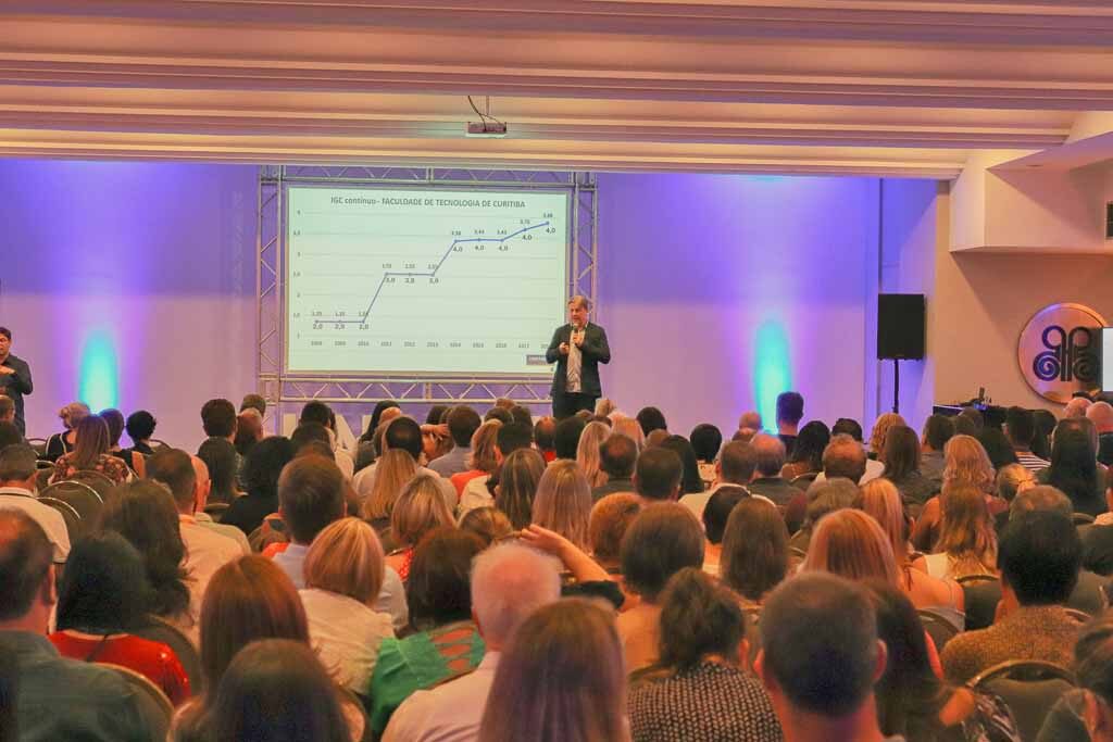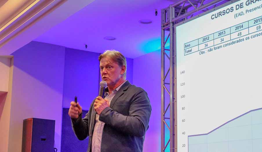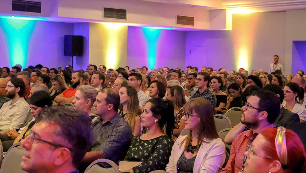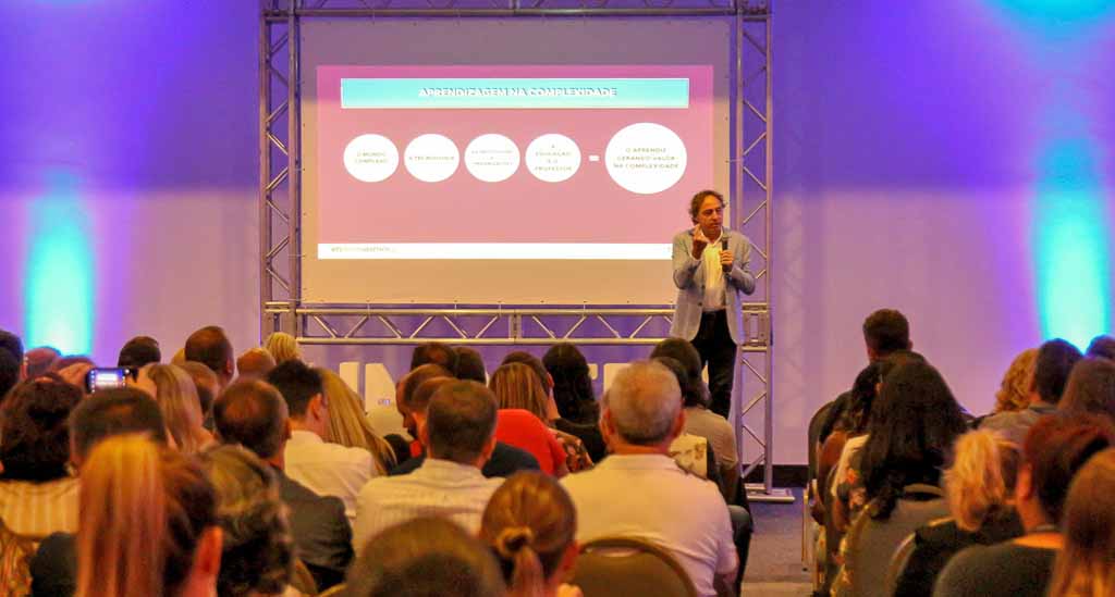 Foi com esse espírito agregador que a abertura realizada no auditório do Hotel Bourbon, em Curitiba (PR), contou com a palestra “A aprendizagem na complexidade”, do educador Eduardo Carmello, diretor da Entheusiasmos Consultoria. “A palestra do Eduardo Carmello colocou esse cenário da complexidade, da tecnologia, das novas gerações, da nova forma de aprender, dos novos movimentos de comunicação para os nossos professores”, diz Karin.