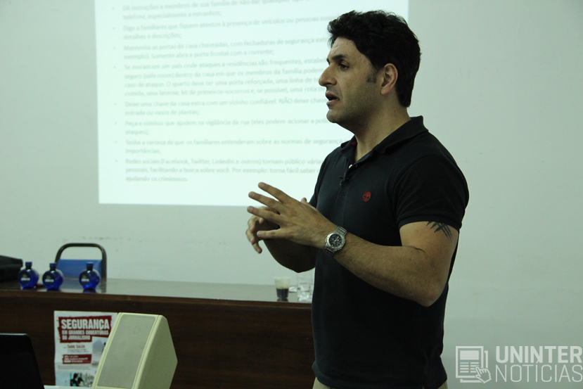 Jornalistas e estudantes participaram do workshop Segurança em grandes coberturas jornalísticas, apresentado pelo correspondente da BBC no Oriente Médio e África, Tariq Saleh. Promovido pelo Sindicato dos Jornalistas Profissionais do Paraná (Sindijor), com apoio do Centro Universitário Internacional UNINTER, o evento foi realizado no auditório do sindicato no dia 04 de junho.