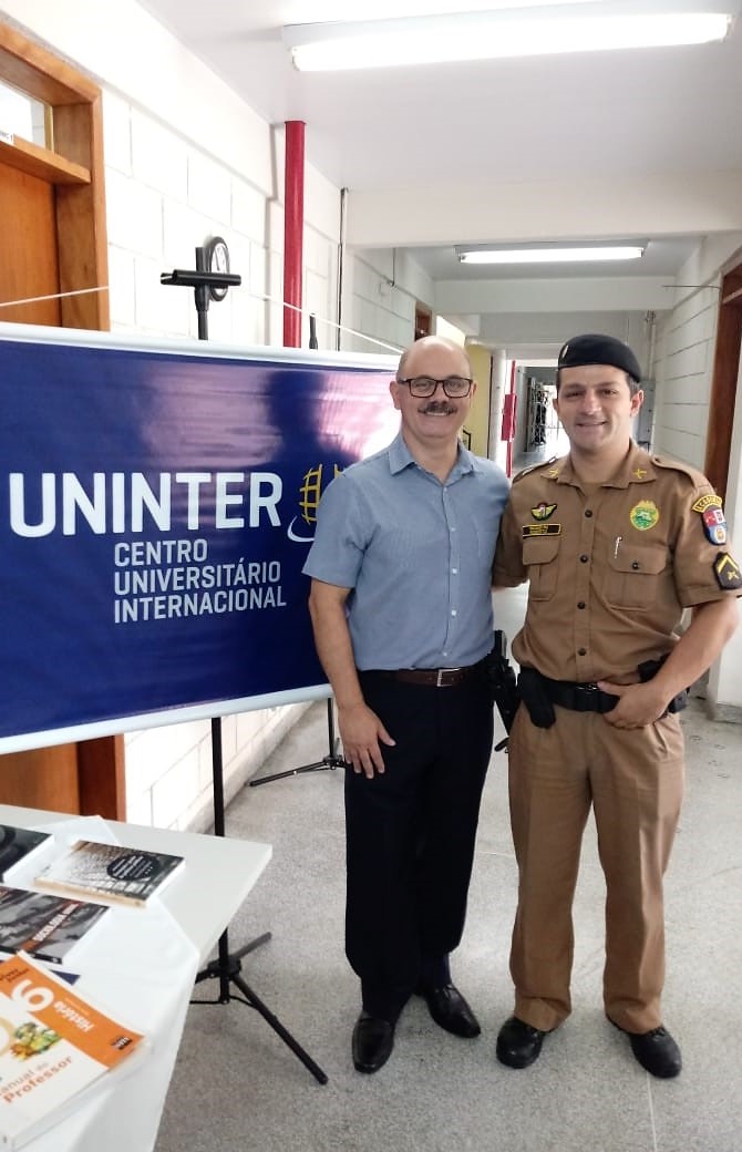 O professor-doutor Gerson Luiz Buczenko, coordenador dos cursos superiores em Tecnologia de Segurança Pública e de Gestão do Trânsito e Mobilidade Urbana da Uninter, visitou a Academia Policial Militar do Guatupê, em Curitiba (PR), para promover a Semana de Incentivo à Leitura 2019, que ocorreu entre os dias 11 e 15 de março.