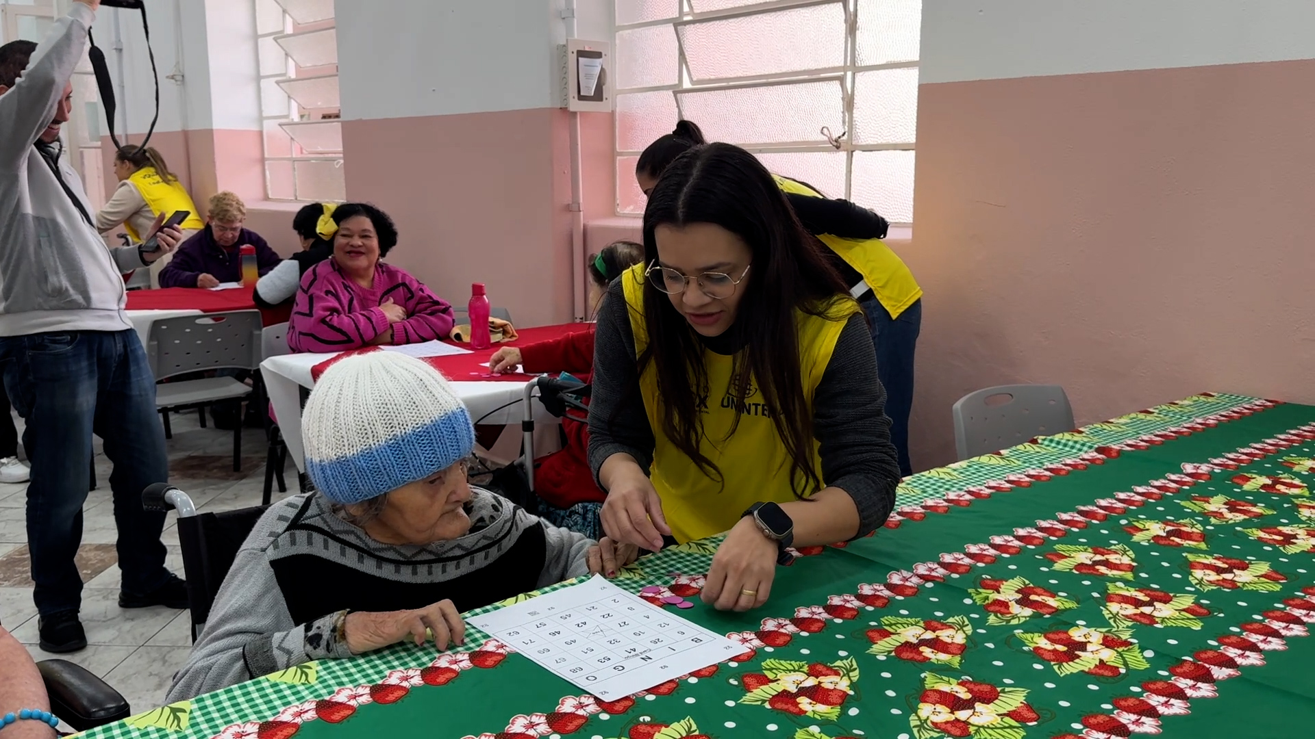 Bingo, lanche, bate-papo e muita música boa. Foi assim o momento compartilhado entre as moradoras do asilo e os voluntários, que dispuseram do próprio tempo e escuta para tornar uma tarde de sexta-feira mais alegre.
