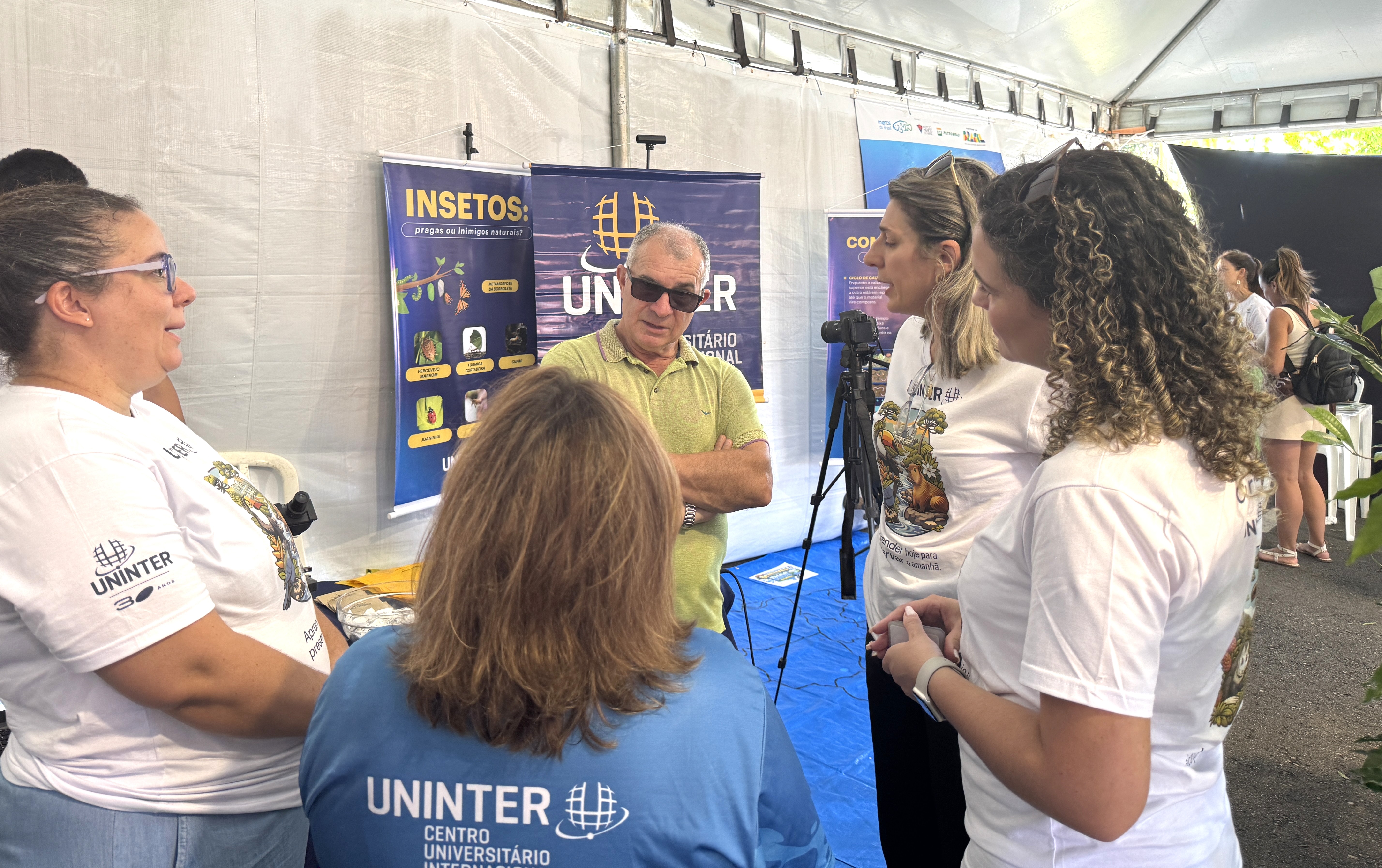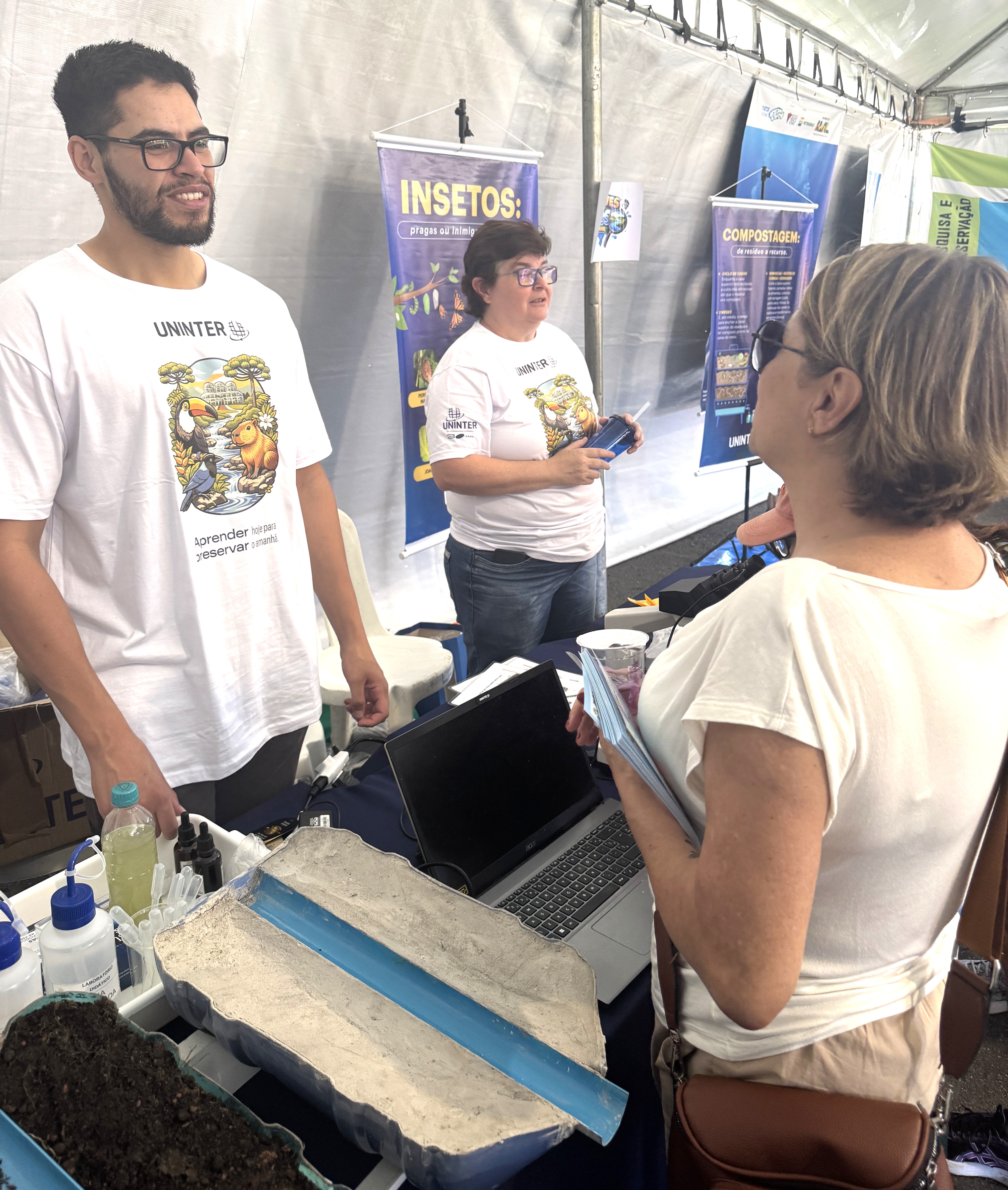 Durante a abertura da feira, a professora Renata Garbossa, coordenadora da área de Geociências, entregou uma camiseta do projeto ao superintendente de Controle Ambiental da Secretaria Municipal do Meio Ambiente (SMMA) de Curitiba, Ibson Gabriel Martins de Campos. Ele enalteceu a parceria com a Uninter. “Tem sido uma grande parceira. Ela realmente tem um olhar muito forte com as questões ambientais e a preocupação com a qualidade de vida das populações”, afirmou. O superintendente também aproveitou para divulgar o programa COM-POS-TE Curitiba, que distribui composteiras para incentivar a compostagem domiciliar.
