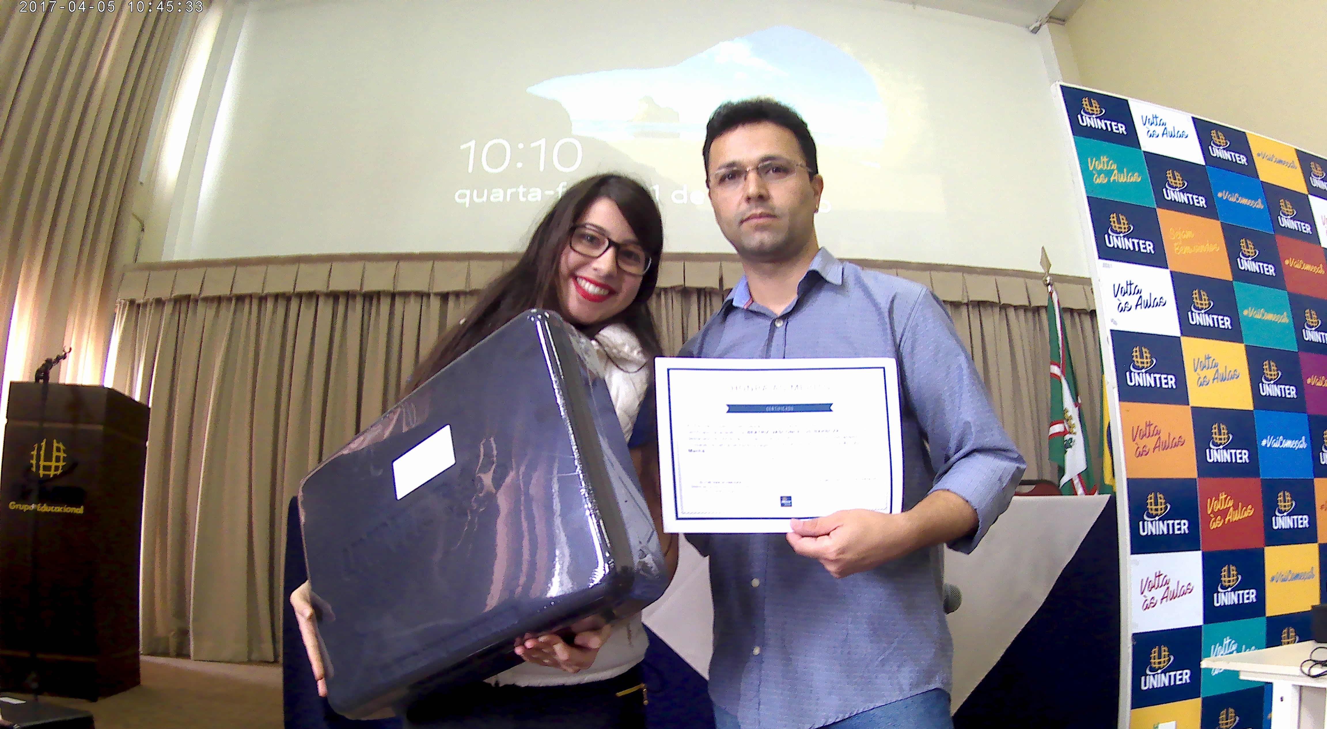 “Vou usar para o projeto de extensão que eu participo. Também vai ajudar muito na UTA [Unidade Temática de Aprendizagem] que eu vou começar a estudar agora, que é web. Vai ser bem útil”, relata a aluna de Jornalismo Patrícia Zeni. “Trabalhando com a teoria e a prática você tem tudo. E a Uninter tá fazendo isso muito bem, incentivando a qualidade do jornalism”, DIZ Douglas Miranda, aluno de Jornalismo e um dos ganhadores do Certificado de Honra ao Mérito.